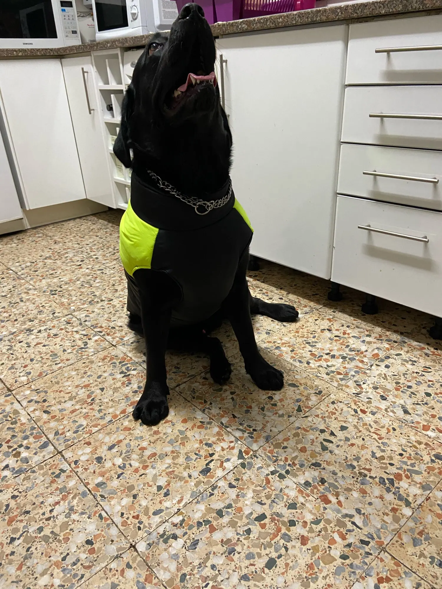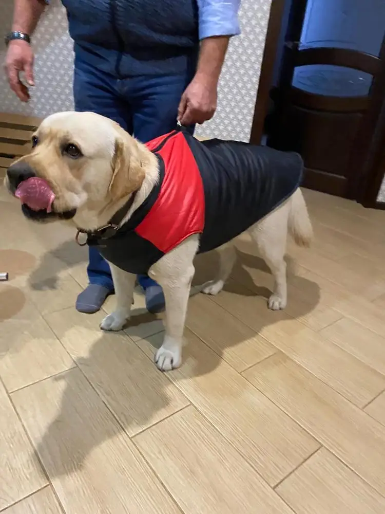 Посылка пришла через две недели (Краснодар). Брала размер 6xl. На породу Кане-корсо немного великовато