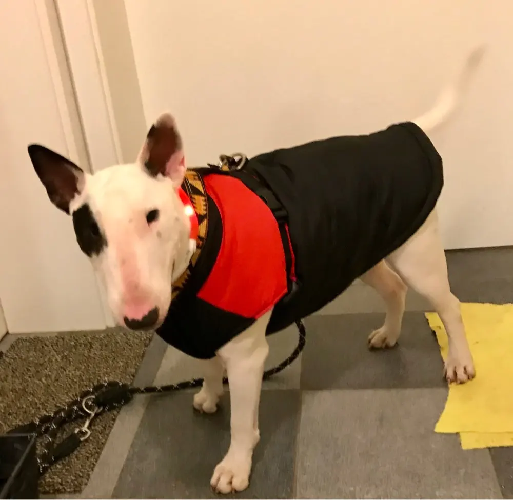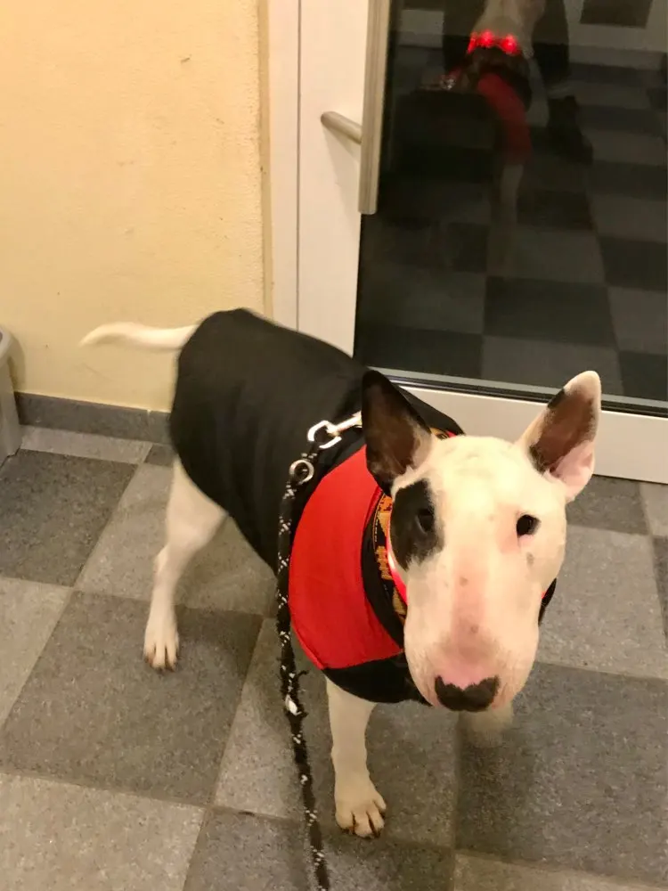пришло за две недели . всё отлично. подошло крупному боксёру 7xl...даже чуть-чуть большая