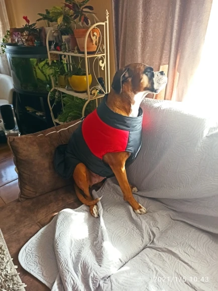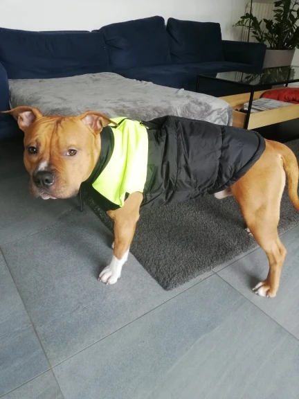 Хорошие куртки. Беру второй год. Уже пятую покупаю, все нравиться, продавец хороший, добрый. Собака Ам стафф, девочка, очень подвижная два года. Играет с другими собаками, иногда куртки рвуться, зашиваю и так на зимний сезон где то три штуки хватает. Хорошие куртки, не стесняют движения, все нравиться. Собаке тепло и она относительно чистая приходит после валяния с другими собаками.
