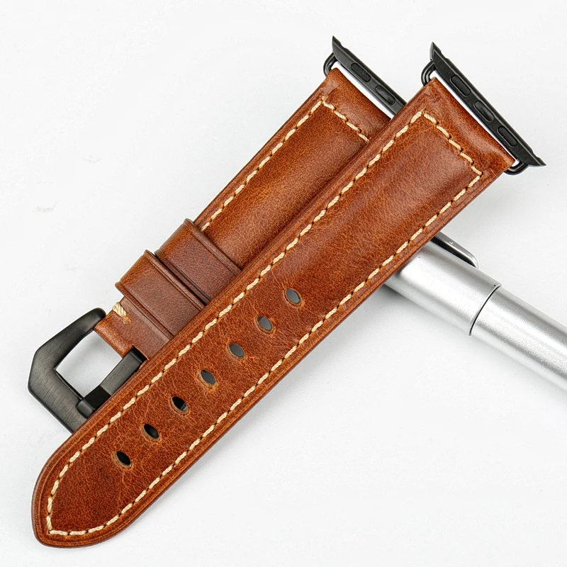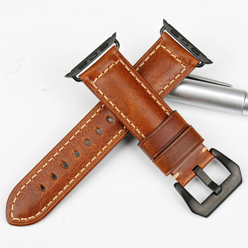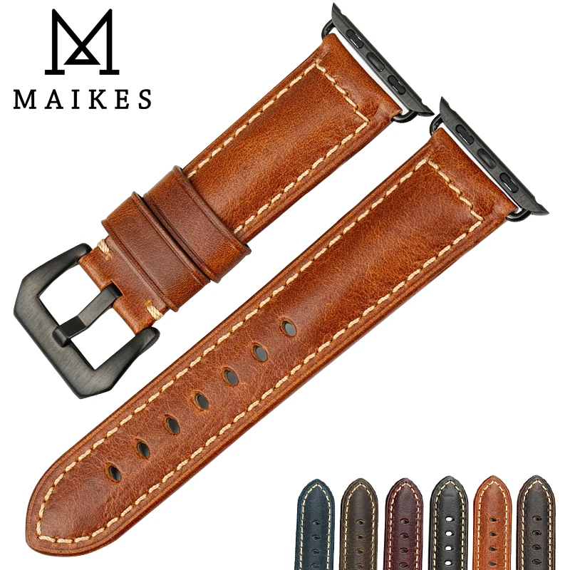 Ремешок MAIKES из натуральной кожи для Apple Watch, винтажный брасл...