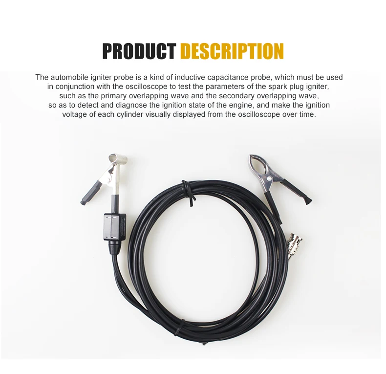 Описание Тип индуктивной емкостной датчик, он должен совпадать с осциллографом Близкий к использованию, может быть использован для проверки вторичного перекрытия волны зажигания, ПЕРЕКРЫВАЮЩИХСЯ параметров волны, таким образом, достигается обнаружение, диагностика двигателя положения зажигания, меняйте напряжение зажигания каждого цилиндра со временем непосредственно от дисплея осциллографа. Линия Лута имеет три конца, совместный осциллограф для использования BNC, а для использования, Заземление зажима для выбора высокого напряжения с зажимом. Loot clincher over является аттенюатором, используемым для ослабления высокого давления при низком давлении, тем самым защищая осциллограф не электрифицировать воздействие. Особенности: При использовании обратите внимание: (1) тестовые зажимы не должны непосредственно зажимать в свечи зажигания, должны быть пойманы в соединении свечи зажигания с изоляционной проволокой, чтобы предотвратить поломку и вызвать шок. (2) расстояние от другого высокого напряжения не менее 2 дюймов, чтобы не создавать помех. (3)HT25 ведущая линия длина 2,5 метров, распада до 10000: 1. Посылка включает в себя: 1 HT25 датчик автоматического зажигания