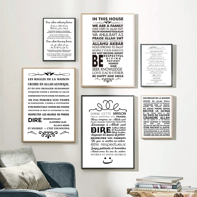 Французская версия ислам ic правила дома настенная живопись на холсте домашний декор, Allah ислам Коран печать, Картина Настенная постер для домашнего искусства