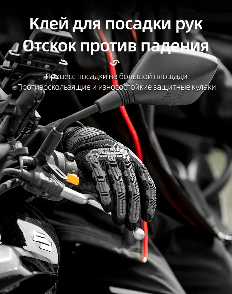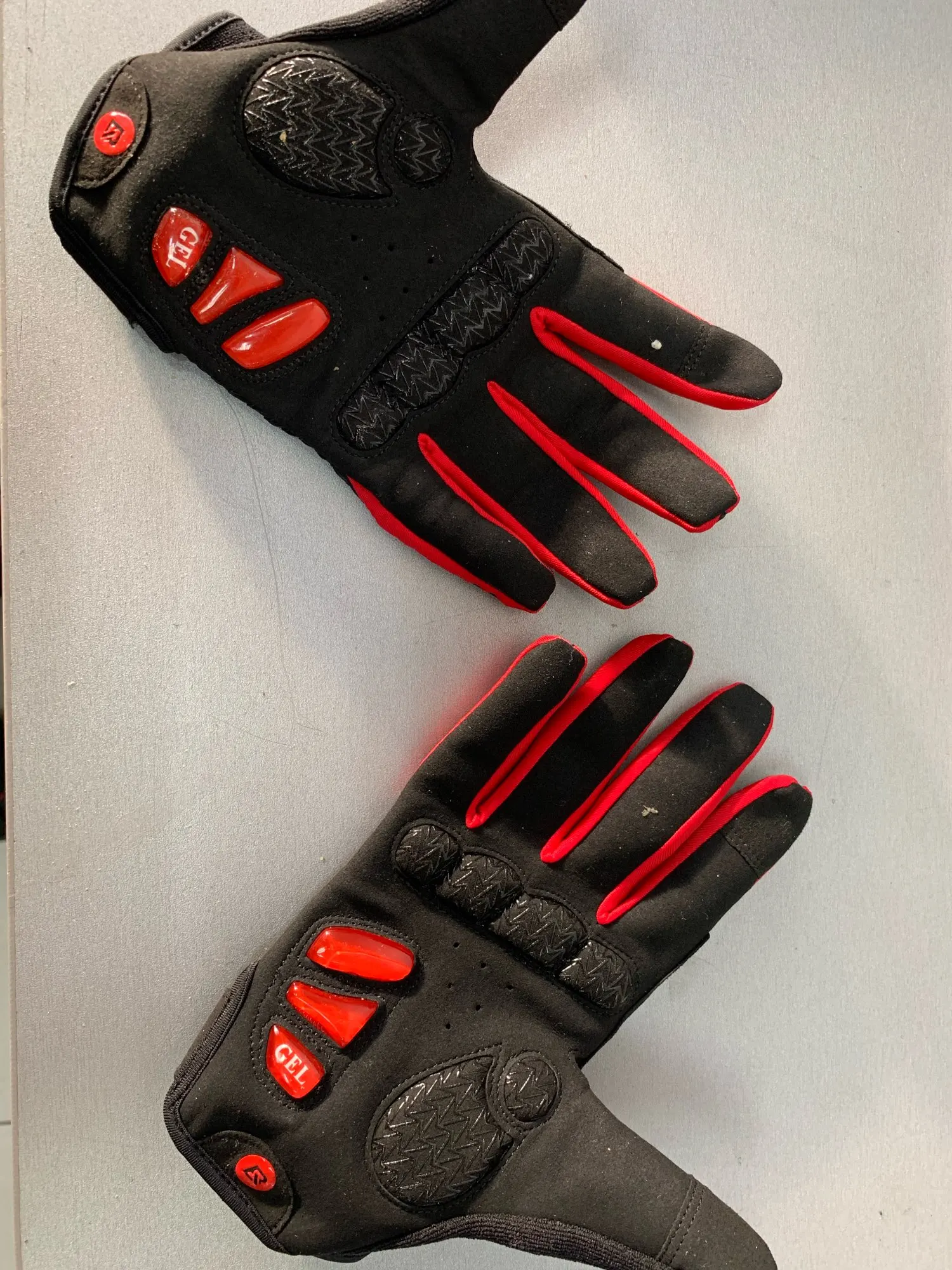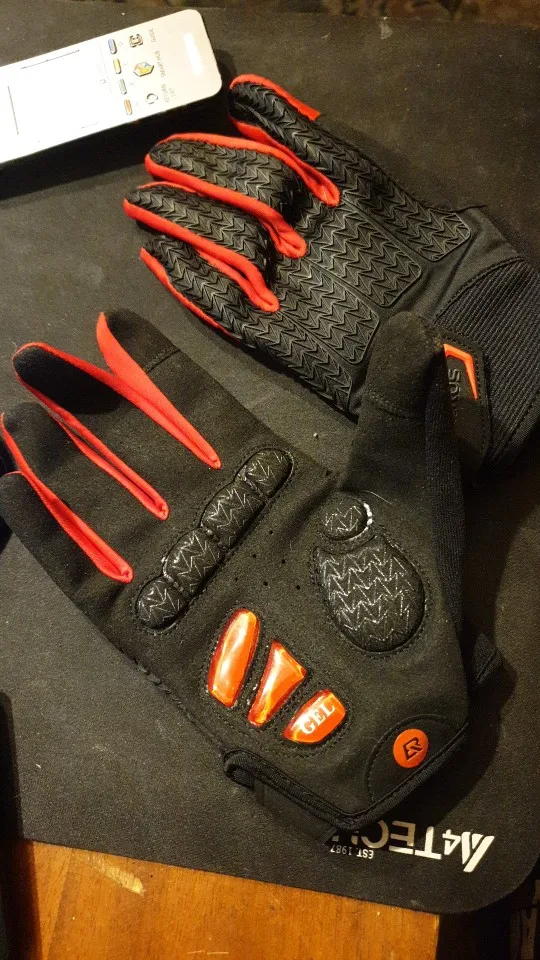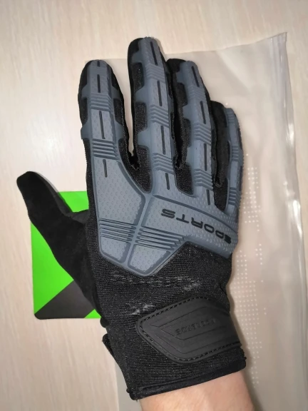 Подобные перчатки беру уже второй раз, первые брал без пальцев, прослужили 2 сезона, и пали в неравном бою с асфальтом. Мягкие вставки работают пару недель, потом сминаются, так что на них не стоит рассчитывать. Размер M, на руку, сел очень плотно, но при эксплуатации, надеюсь немного растянутся, как и прошлые.