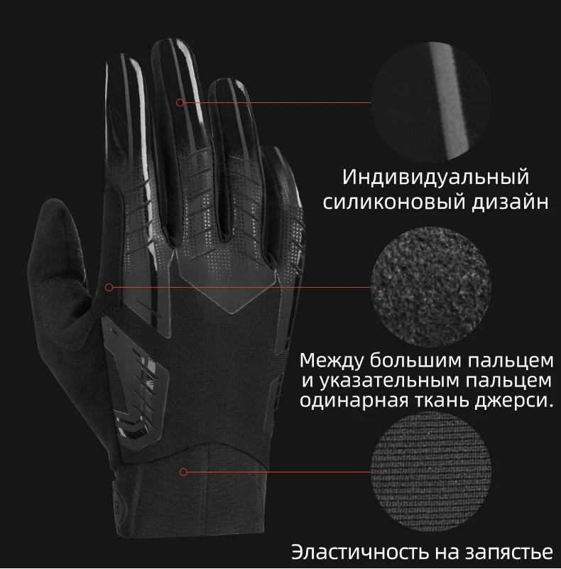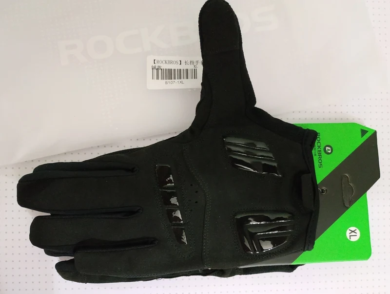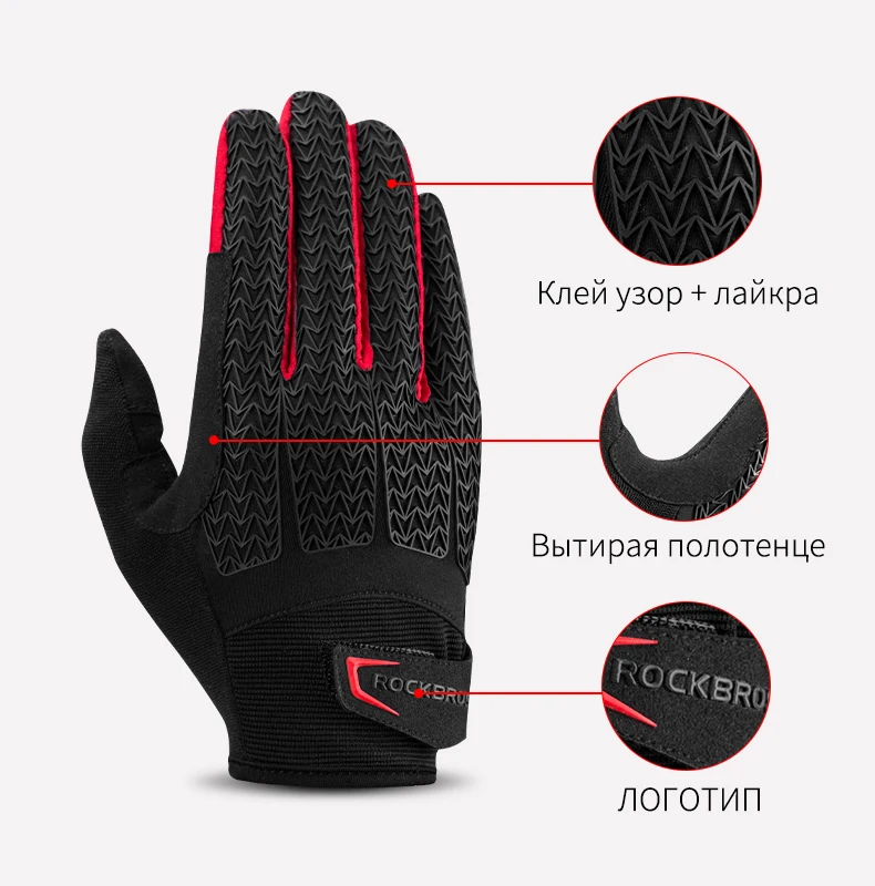 Перчатки с большой надписью ROCK BROS до температуры -3. Берите на 2 размера больше вашего европейского. Довольно удобные, тачскрин работает.