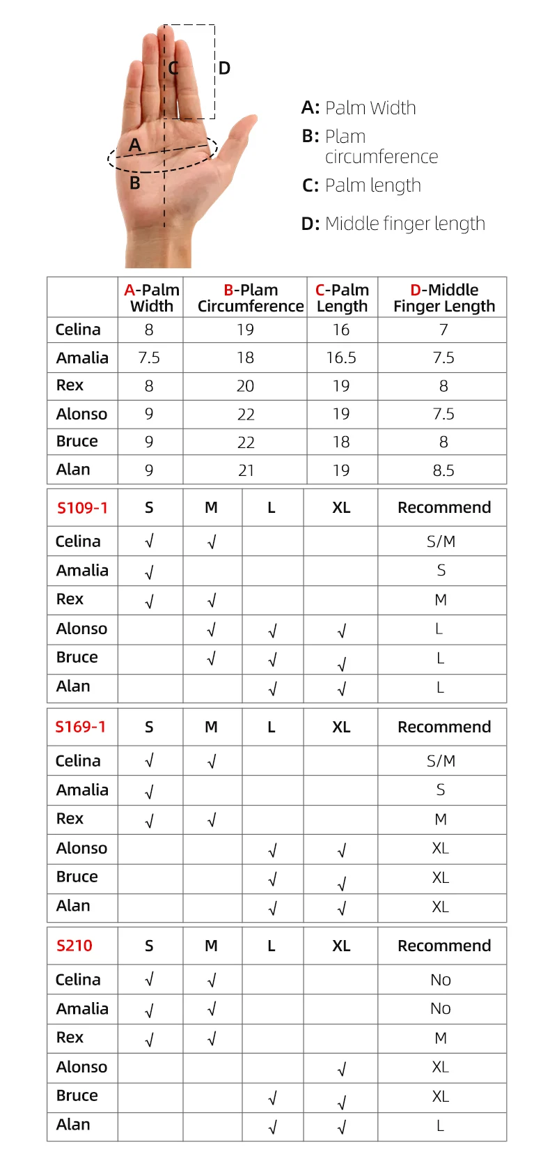 Ширина моей ладони-8,5 см, длина среднего пальца-8 см. Размер L хорошо подходит, XL, возможно, тоже. Материал плотный и гладкий. Я доволен. Доставка в течение месяца. Thx.