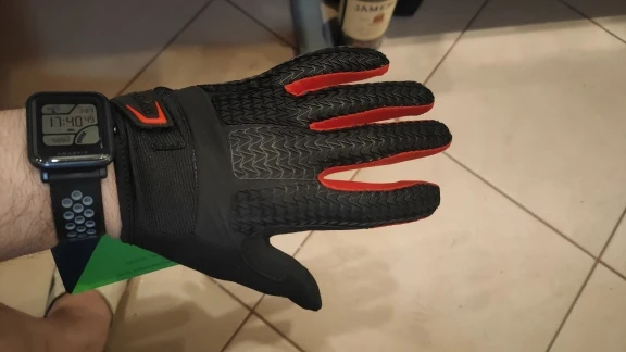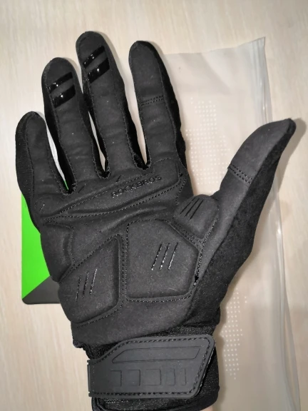 Размеры моей руки: 9 см, B:21 см, C:19 см и D: прибл. 8,5. Я проверил товар в магазине и рекомендовал размер XL. Обычно я использую L, даже как XL пальцы немного красивы по длине, но я использовал их, и они удобные. Они имеют хорошую защиту на ладони и полностью на подкладке. Выход 30 км при температуре около 8 °C и идеально. Возможность обрабатывать телефон, не вынимая их, плюс. В одной розетке, похоже, было какое-то изношенное и левое волокно на захватах (фото), это не выглядит так, как будто они будут очень прочными. Я напишу еще раз, когда смогу сделать их больше миль.