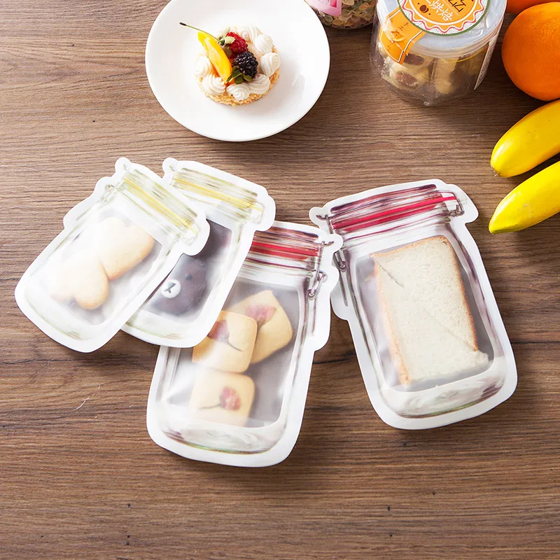 1 комплект = 3 шт.! Прозрачный пластиковый пакет на молнии в форме бутылки, многоразовый Вакуумный пакет для хранения продуктов