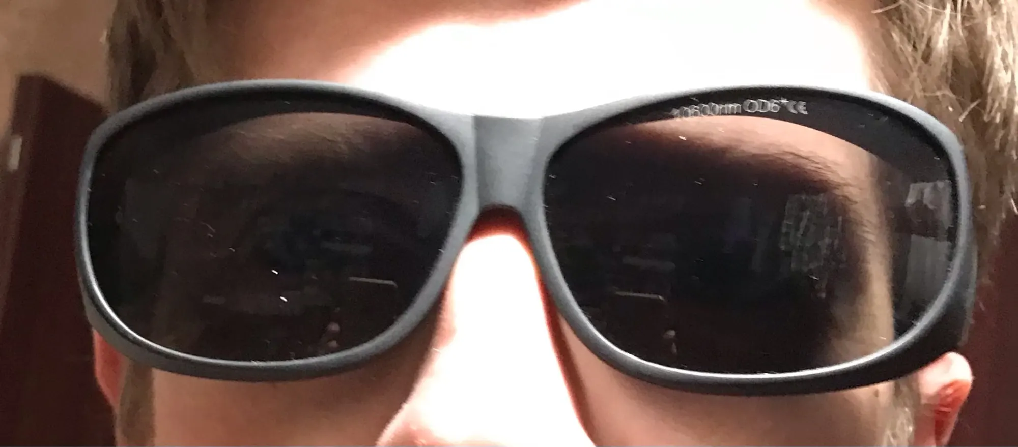 Я проверил очки и удерживал их непосредственно в лазерном пучке СО2. Кусок бумаги, оставляющий за собой Пульс 80 Вт, не поврежден. Линза сгорела на лицевой стороне, но внутренняя часть полностью повреждена. Я рекомендую эти очки.