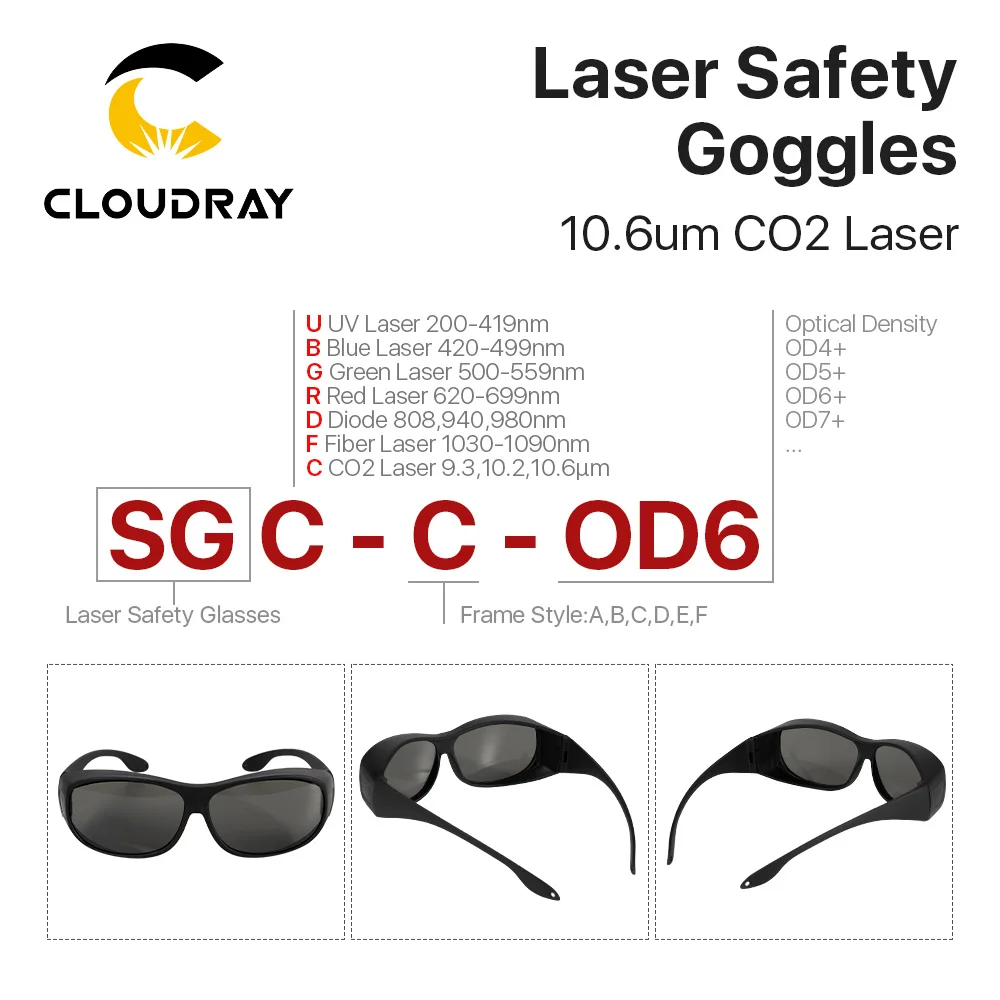 Cloudray 10600 нм стильные C лазерные защитные очки OD6 + CE защитные очки для CO2 лазерная резка, гравировальный станок