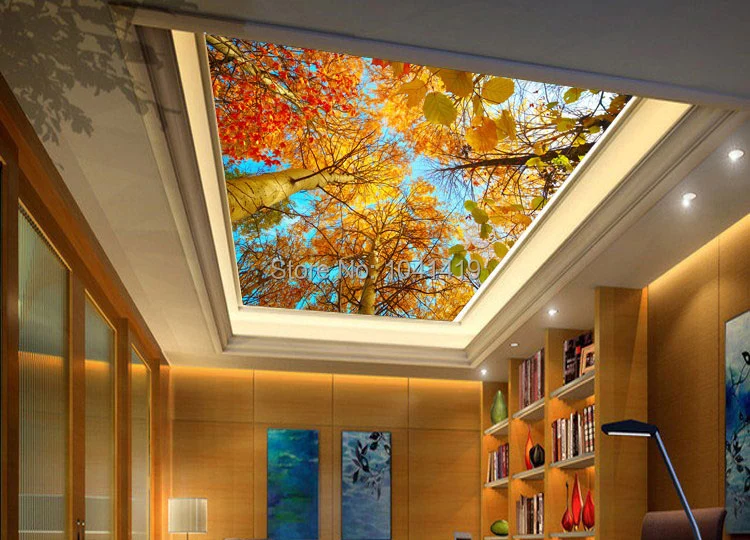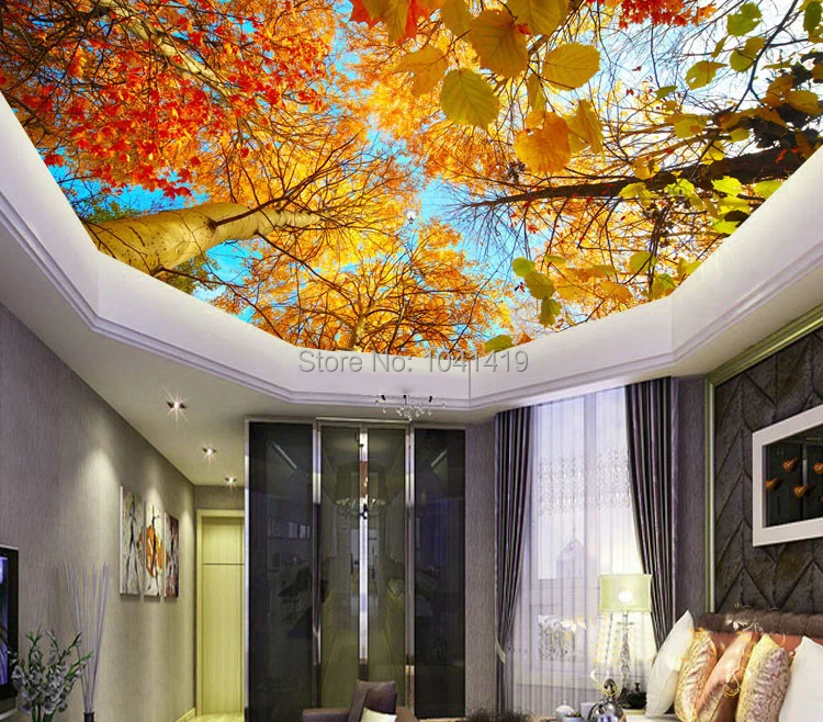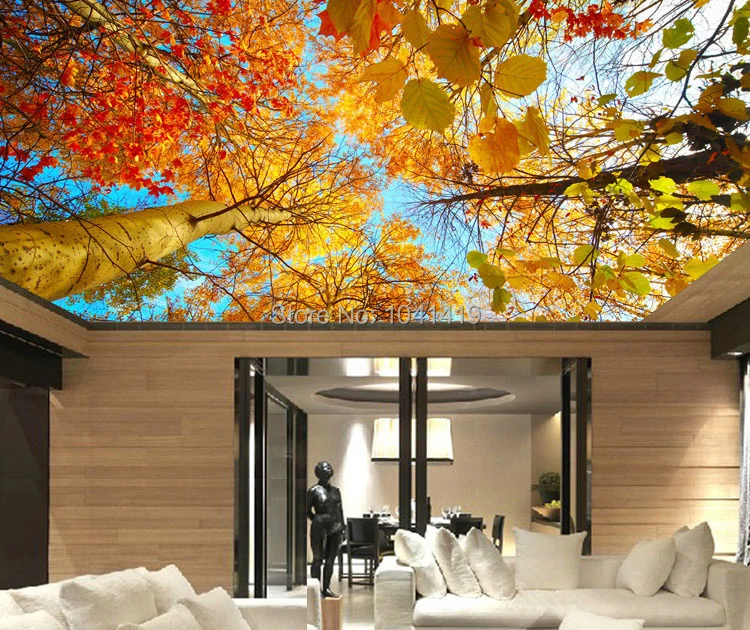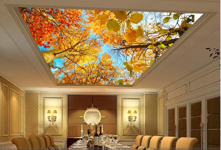 HD красивые осенние фотообои с кленовыми листьями, 3D потолочная фотообои для гостиной, ресторана, отеля, декора, 3D Paisagem