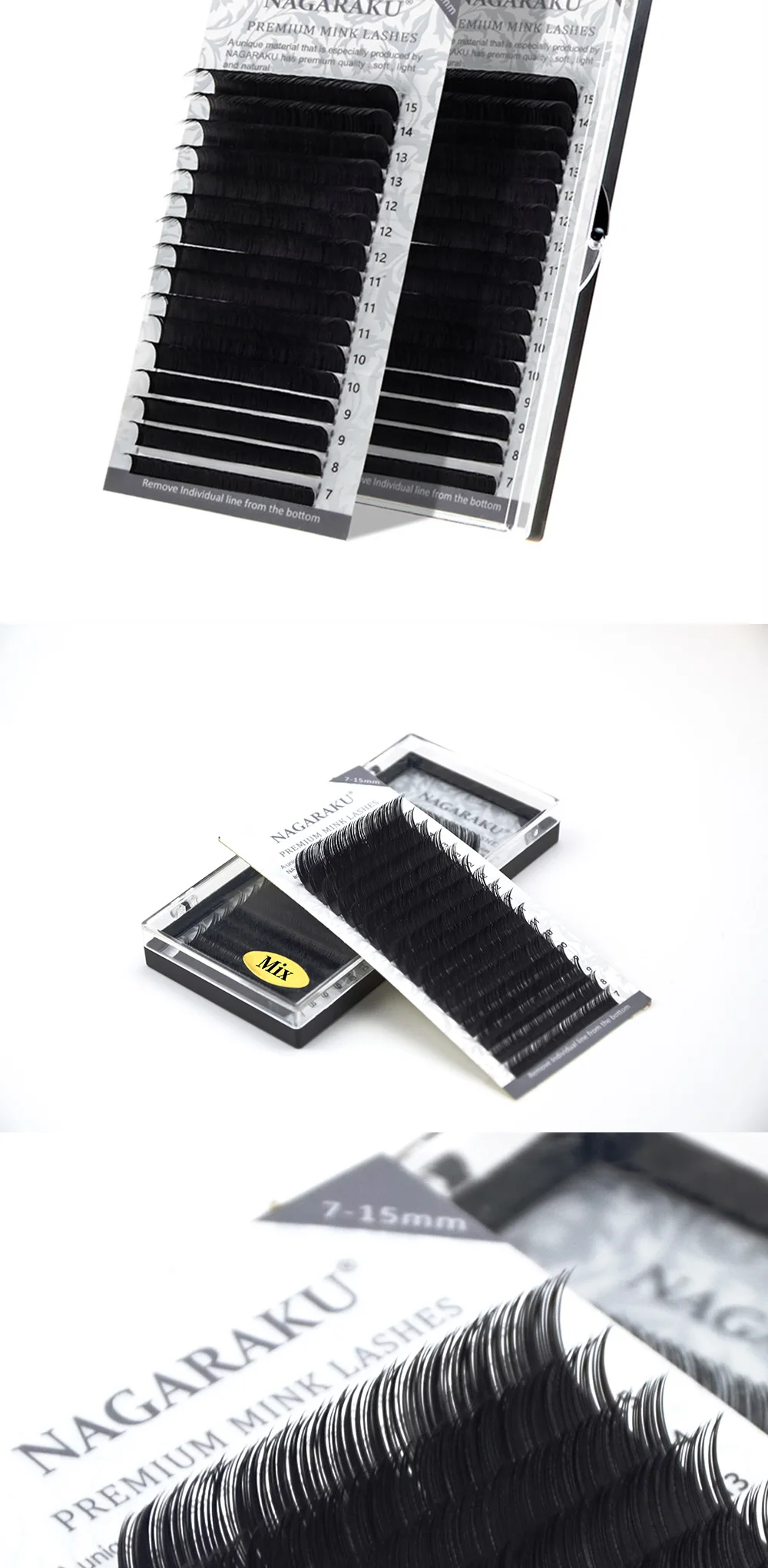 NAGARAKU 50 чехол s оптовая 7 15 мм микс 16 рядовЧехол Натуральные Искусственные норковые ресницы для наращивания, ручная работа, натуральные длинные