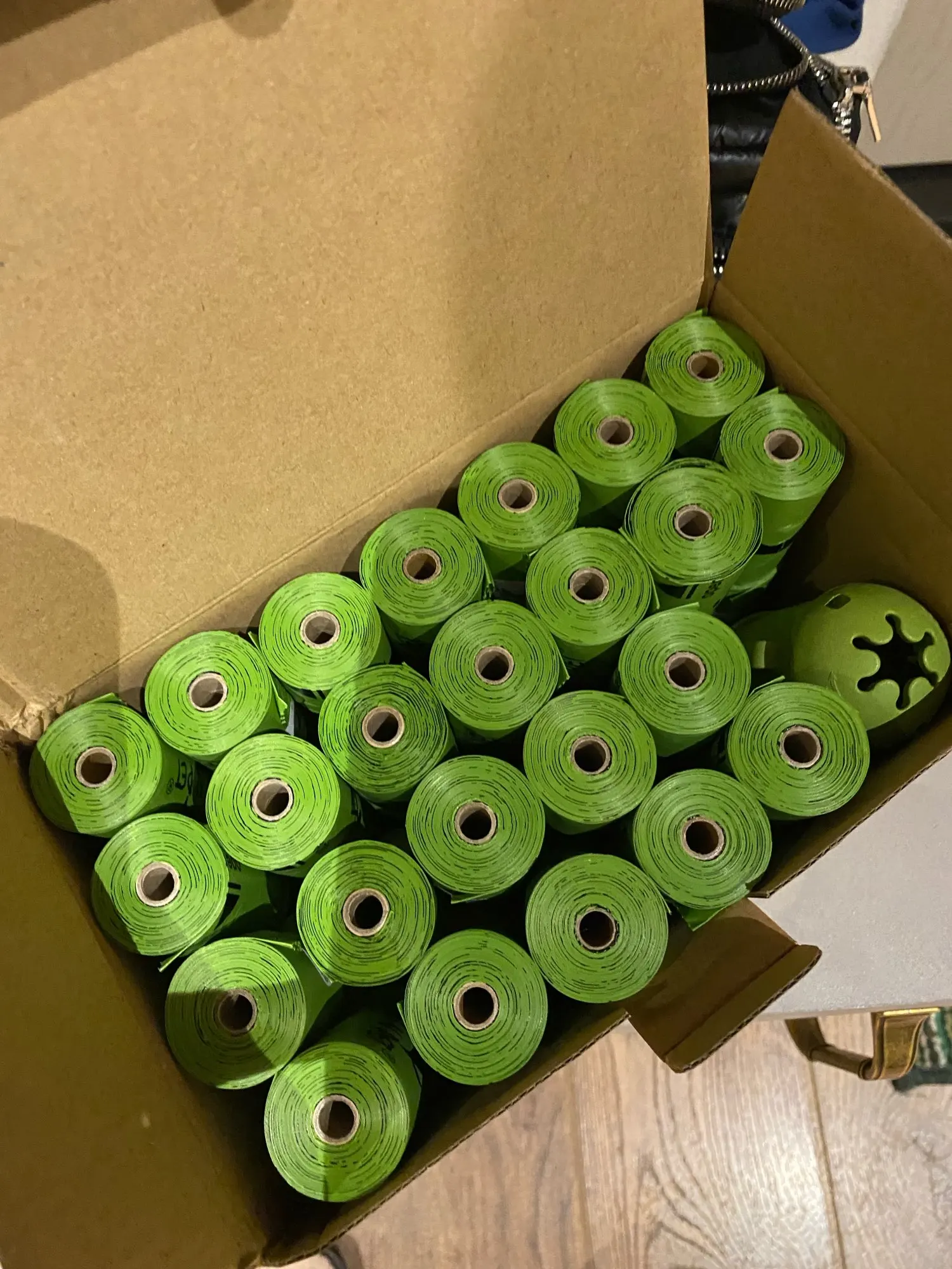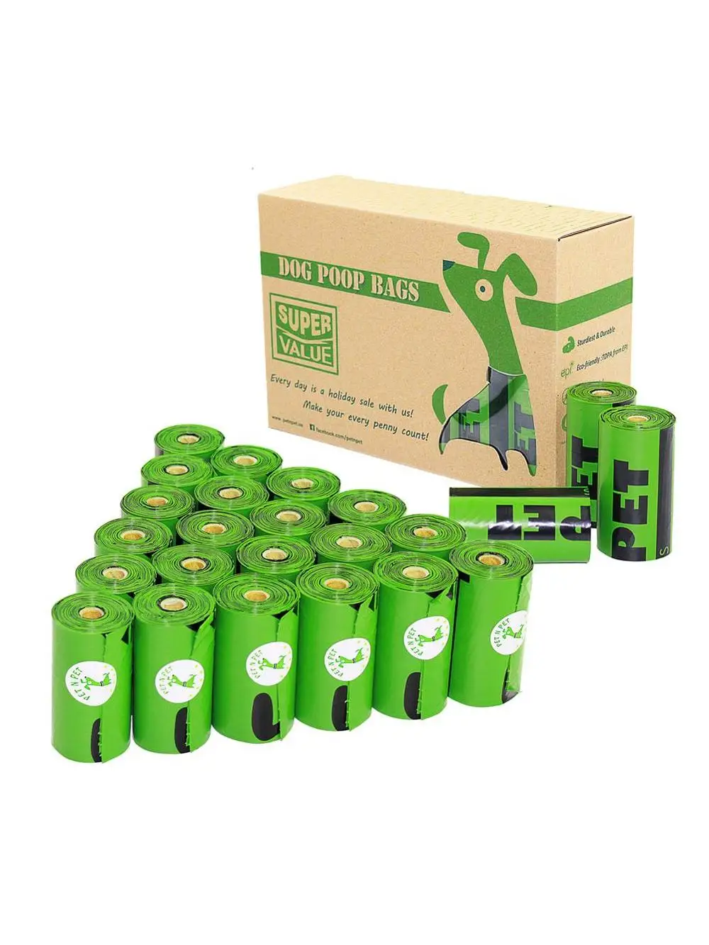 Биоразлагаемые гигиенические пакеты для выгула собак и кошек, экологически чистые, плотность 15 микрон, 2448 рулонов 360720 штук по 15 штук в рулоне. Цвет зелёный.