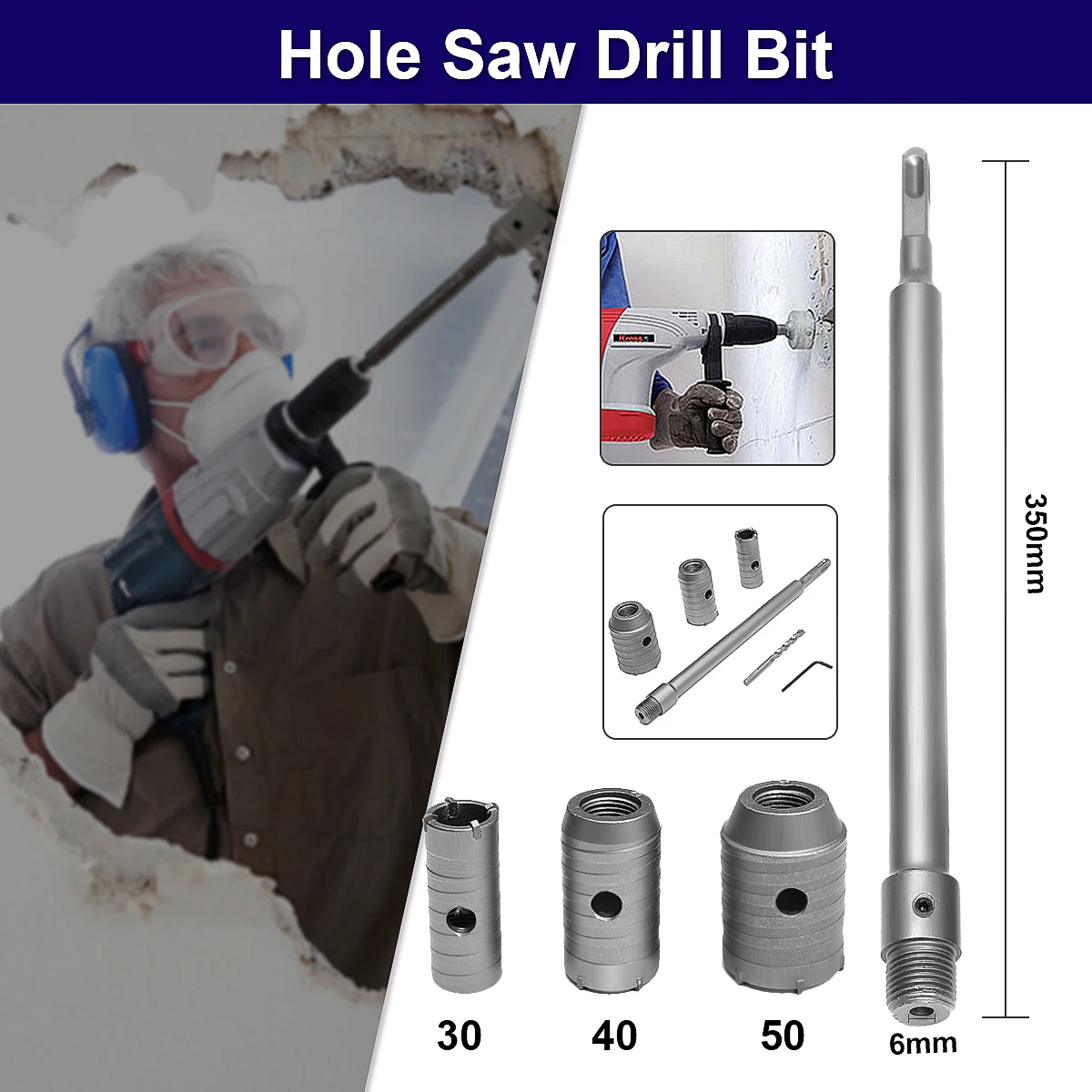 Новинка 2021 3 шт. 30 мм40 мм50 мм SDS Plus пила для отверстий резак для бетона цемента фреза для бетона с гаечным ключом
