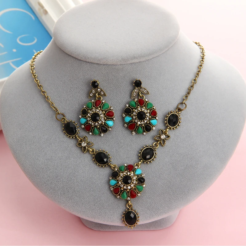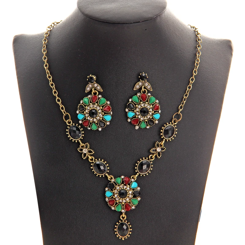 Винтажные наборы ювелирных украшений с кристаллами в турецком стиле, разноцветное Золотое массивное ожерелье, серьги для женщин, модные аксессуары, подарок