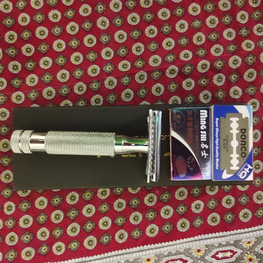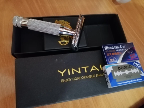 Быстрая доставка в Украину, дошло всего за 12 дней. Честно говоря, я был нереально удивлён когда распаковал посылку - внешне все выглядит оооочень презентабельно. Чёрная, подарочная коробка Yintal, ничего не помятое, внутри коробки сам станок и 2 пачки лезвий. Лезвия минг ши хреновые, их можна сразу менять. А вот Dorco ещё не пробовал. Позже дополню отзыв по лезвиям. Внешне станок очень добротного качества, лезвия вилкинсон стали как в литые, без какого-либо перекоса, вылет равномерный. За эту стоимость станок просто пушка, могу рекомендовать. По поводу агресивности самой головы - так же позже дополню отзыв. Но с виду - это точная копия Мюле 89