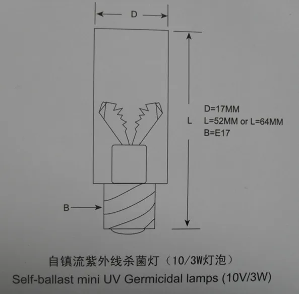 3 Вт 3 вт уф бактерицидный светильник лампа GTL3 E17 базовый УФС-стерилизатор кварцевая лампа для дезинфекции замена лампы 10 В-12 в вход