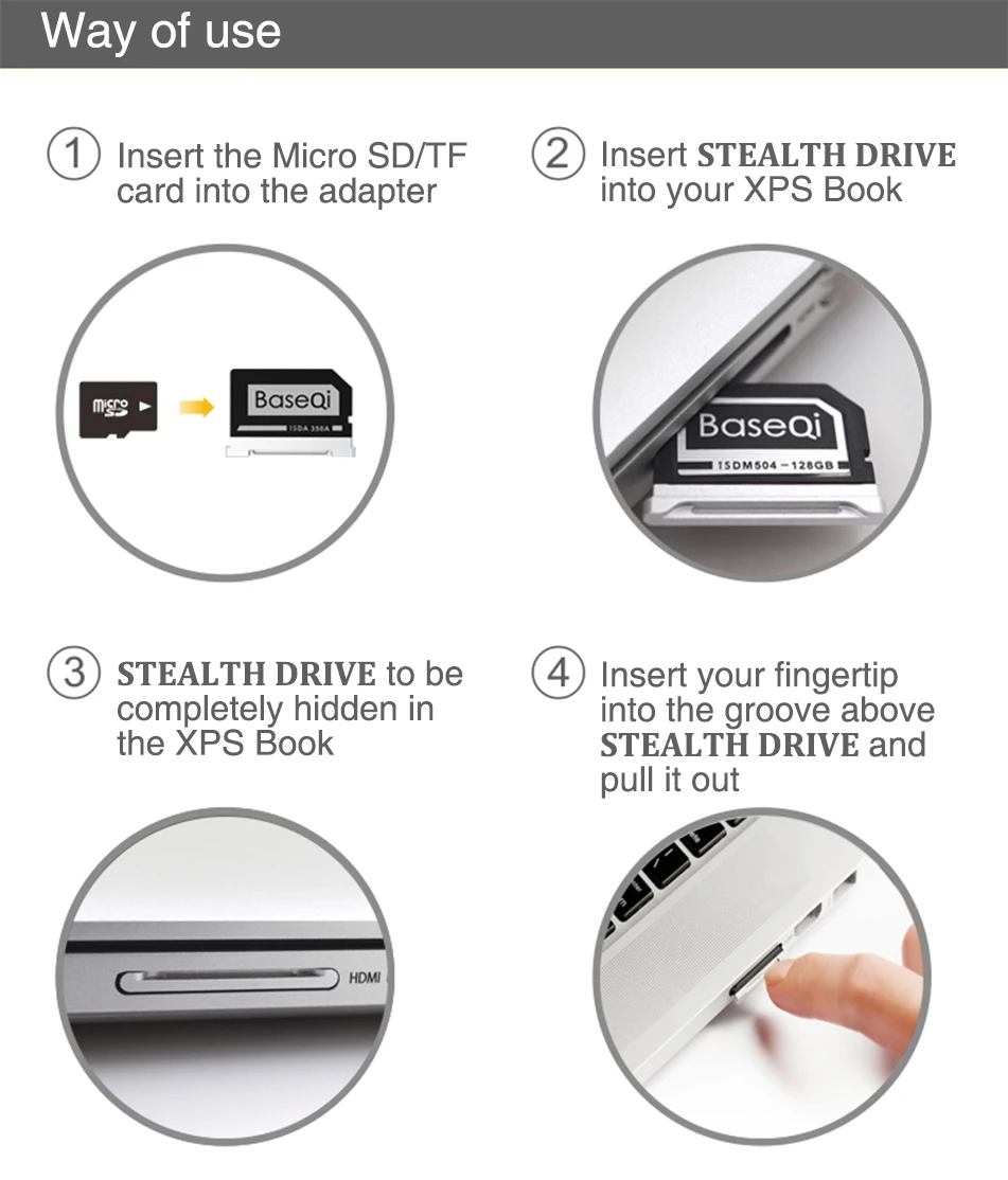 BaseQi алюминиевый стелс-накопитель Micro SDTF карта адаптер SD кард-ридер для Dell XPS 13"