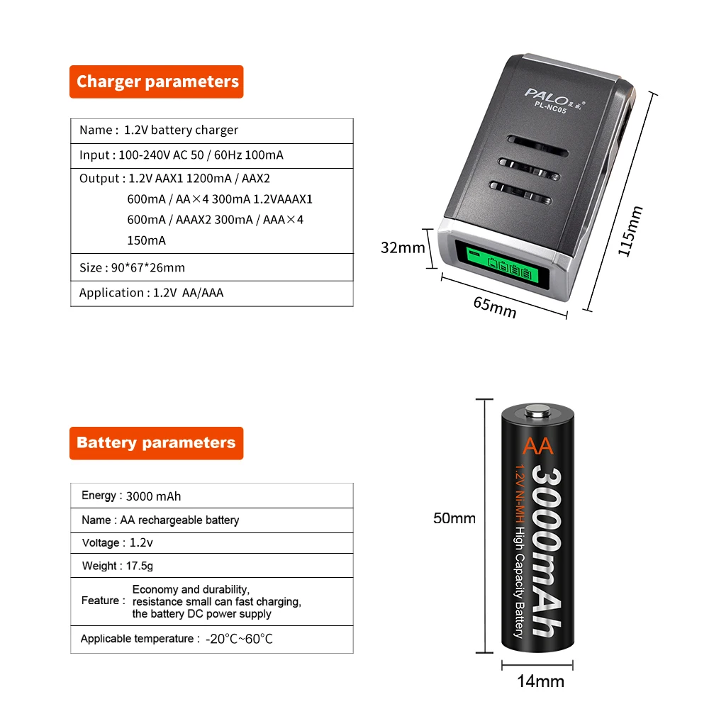 PALO1.2V Ni-MH AA перезаряжаемые батареи AA 3000mAh перезаряжаемые ...