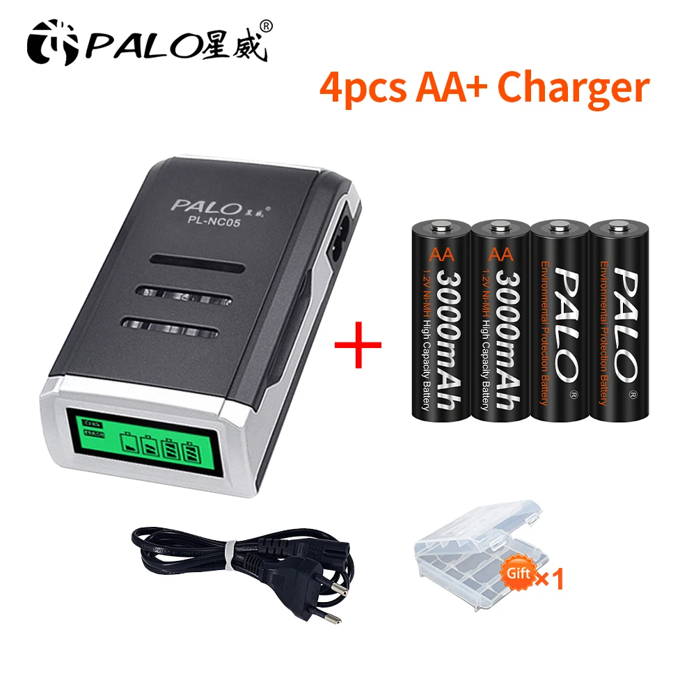 PALO 8 шт. 3000 мАч AA аккумуляторная батарея + LCD интеллектуально...