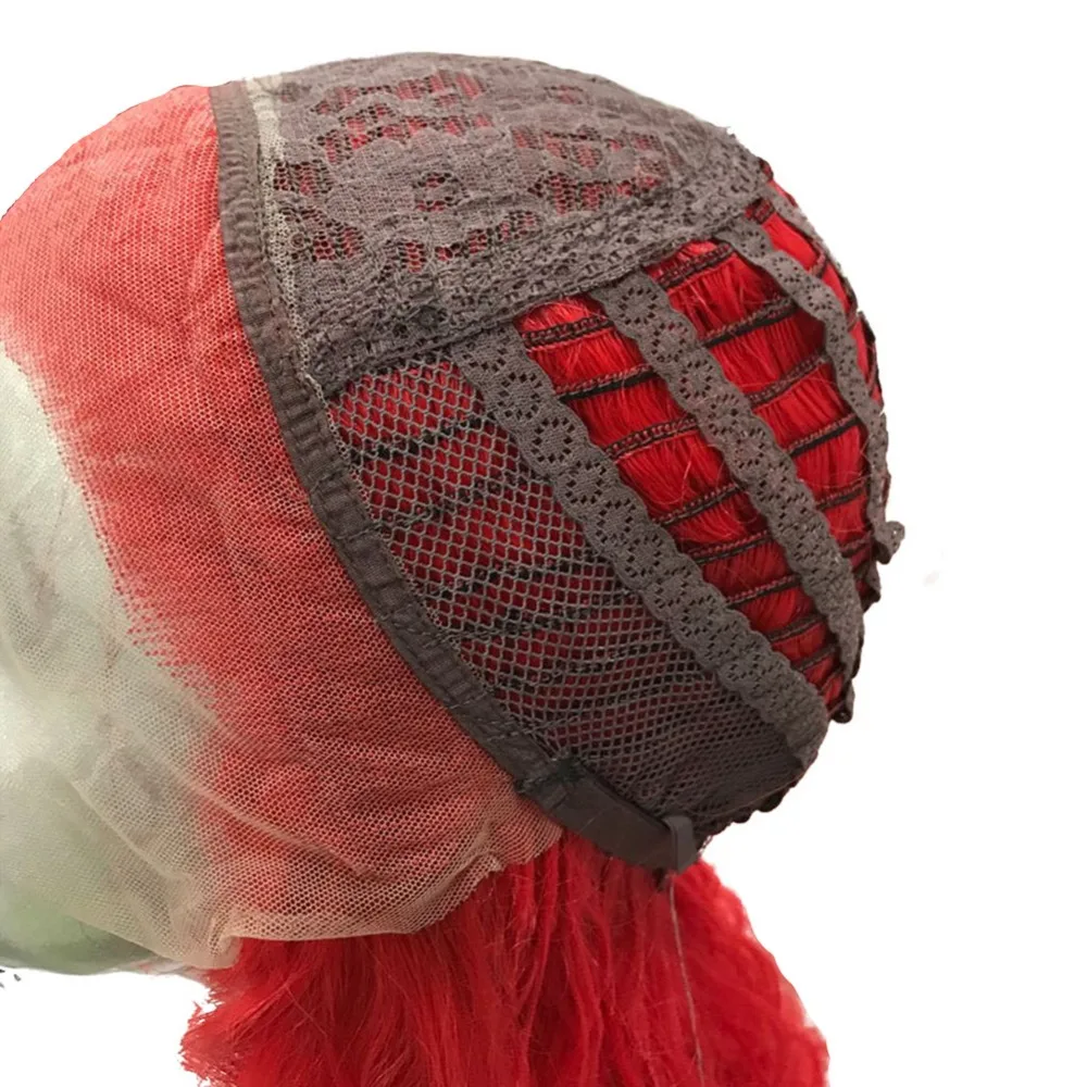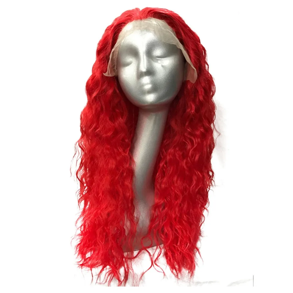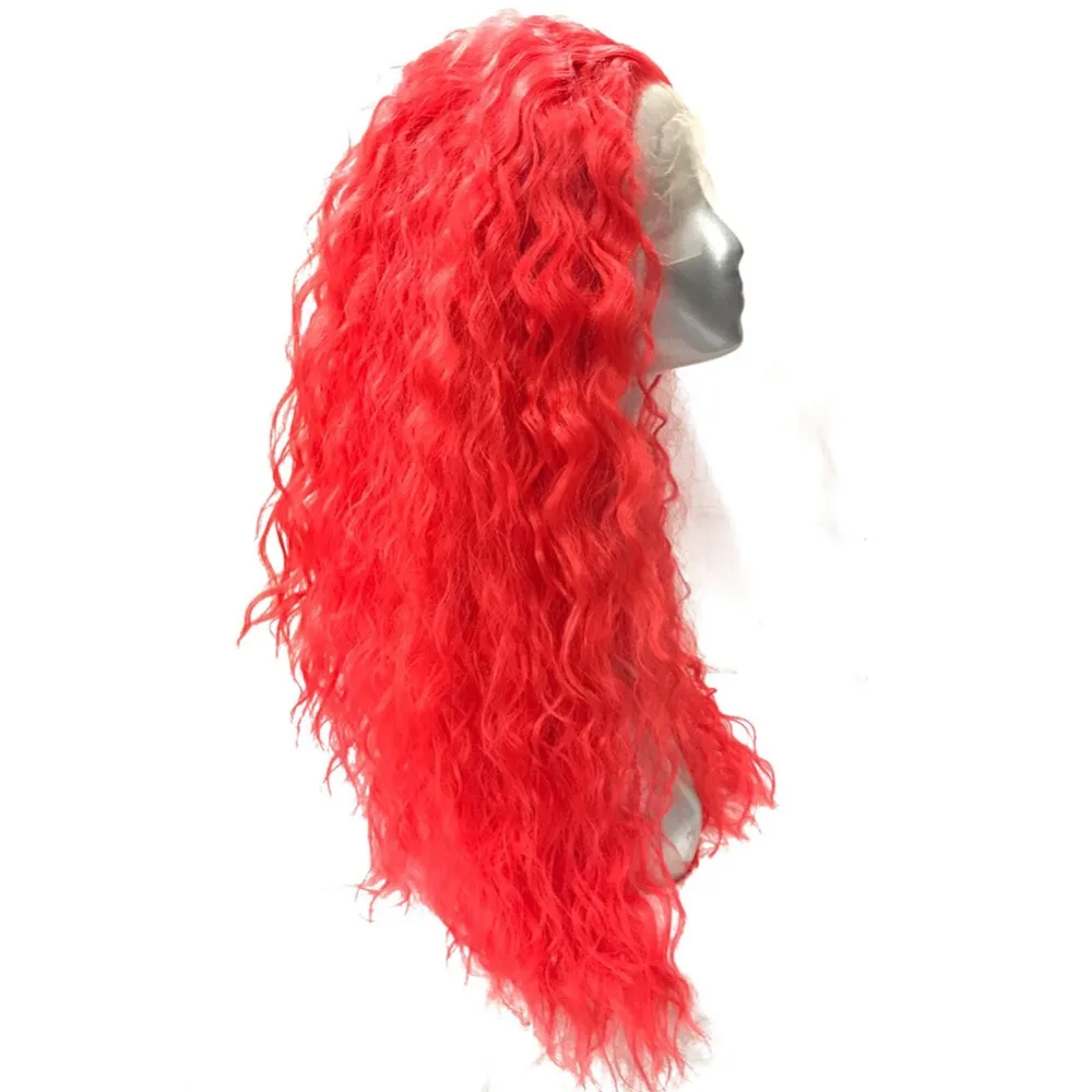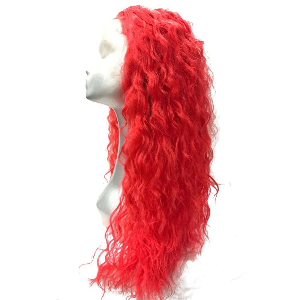 Парики фронта шнурка Красный длинный кудрявый парик из синтетического термостойкого волокна
