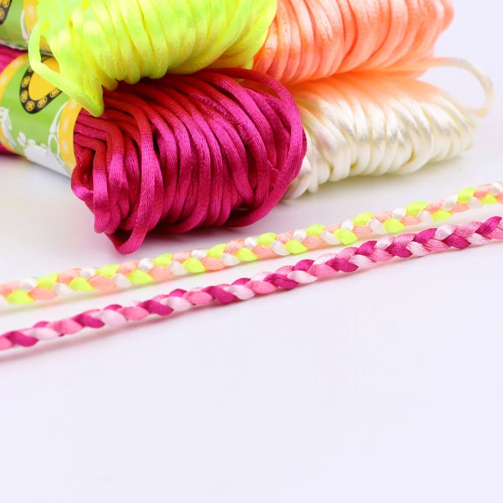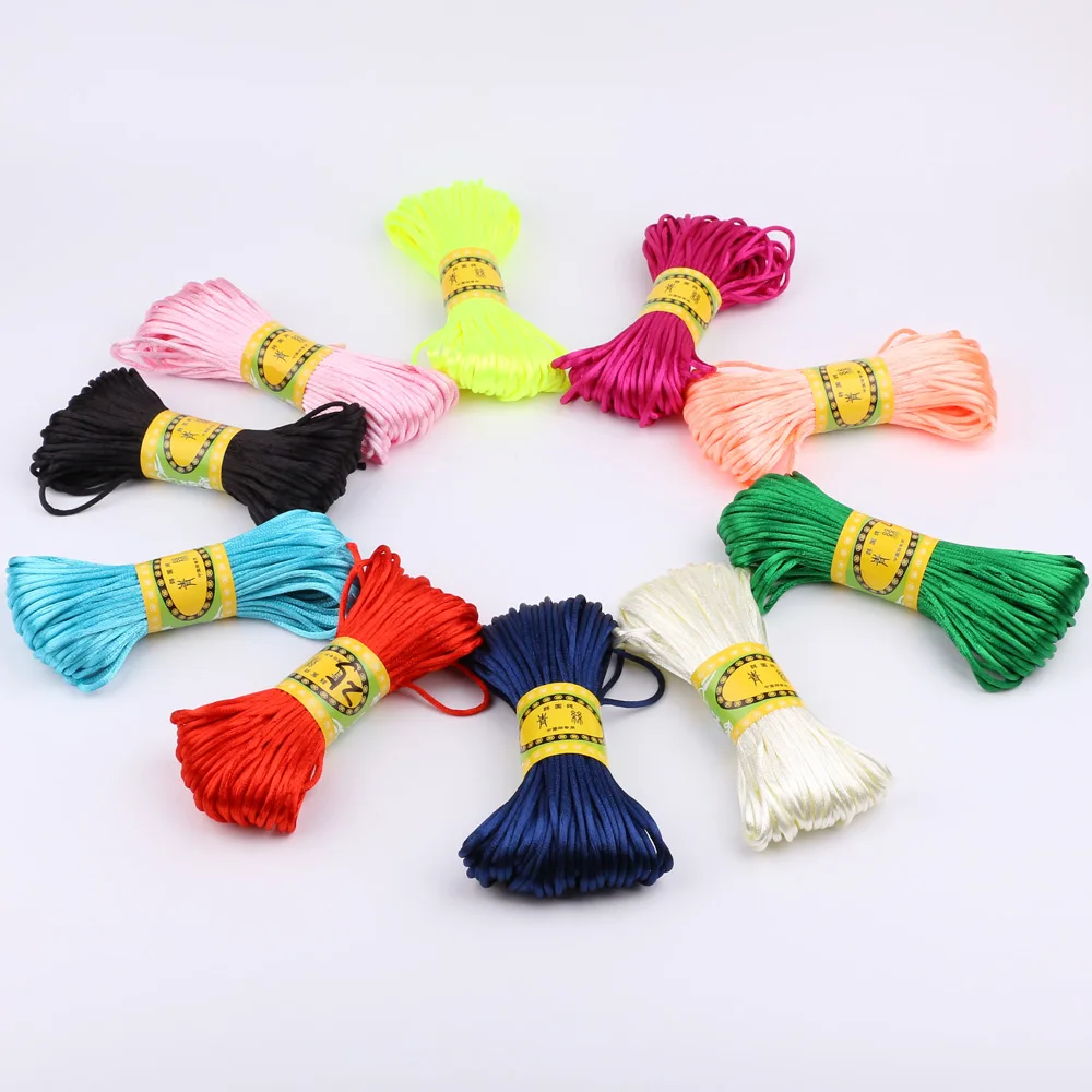 Шнур нейлоновый сплошной канат для изготовления ювелирных изделий, браслетов, ожерелий, детских цепочек, разноцветный, 20 м в комплекте
