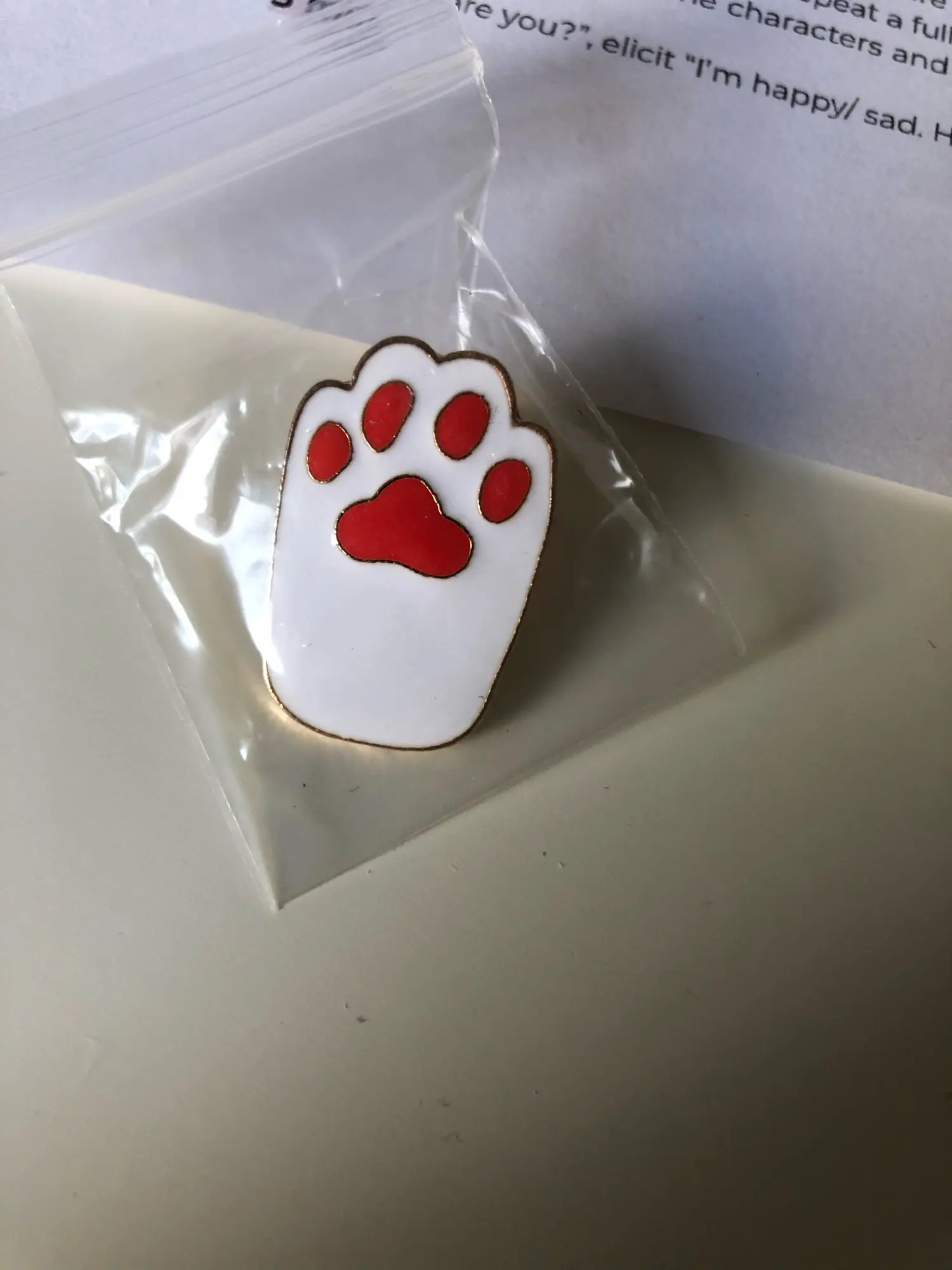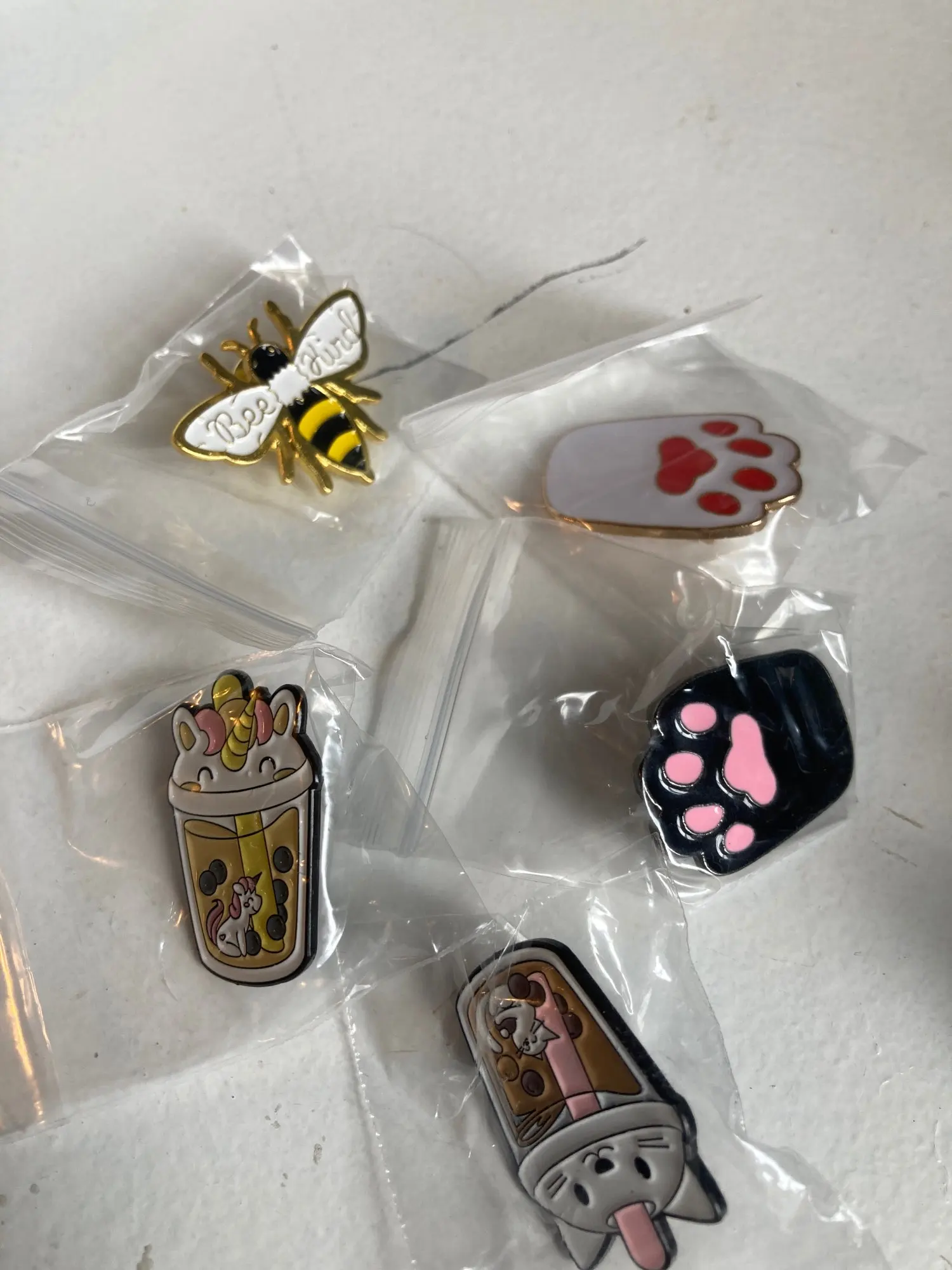 Los pins están muy bonitos, sólo el color rosa es menos pastel que el de la foto del proveedor, sobre todo en la patita blanca.