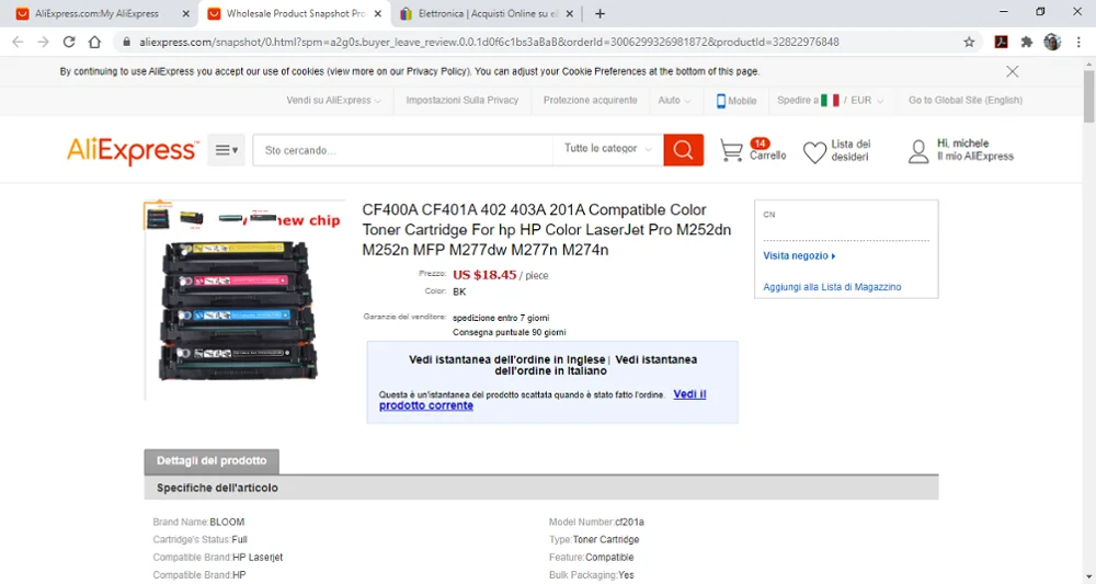 Я купил тонер у этого продавца, не допускайте такой же ошибки на сайте, он показывает вам фотографию с 1 комплектом из 4 цветов, тогда он отправляет вам только 1 цвет. Фотография, которую он разместил, является обманчивой, вы видите точно, что он предлагает 1 полный комплект, а затем вы получите Рип-офф. Сначала он продает вам только 1 цвет вместо 4, а затем емкость печати составляет половину, как правило, с этой ценой на других сайтах они продают вам только цвета, которые вы делаете 2800 копий, В то время как на этом сайте вы покупаете тонеры в 1400 экземпляров, а затем наполовину. Я принимается только потому, что я хотел купить 1 полный комплект из 4 цветов, как вы можете видеть из того, что он рекламирует, в противном случае я бы никогда не купил 1 Тонер, который делает только 1400 копий вместо 2800, что другие продавцы предлагают Держитесь подальше