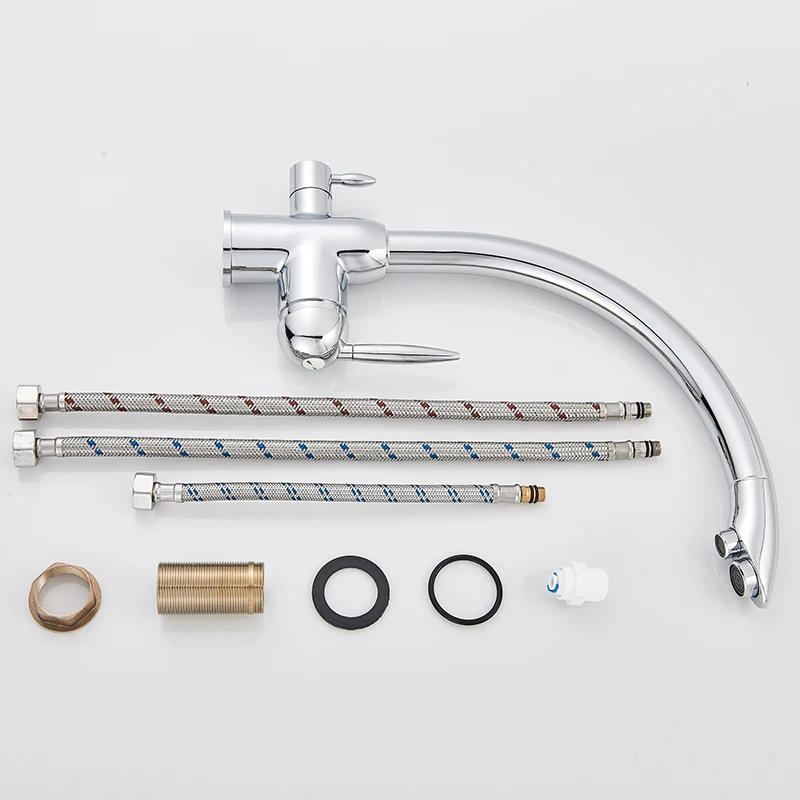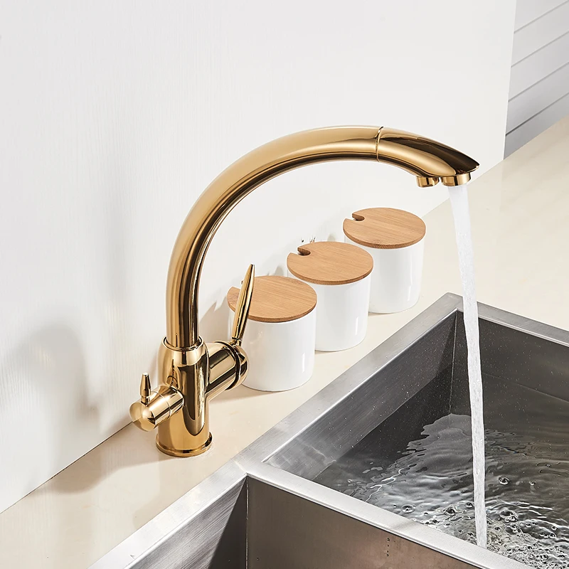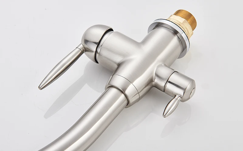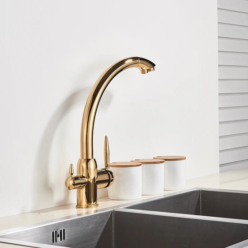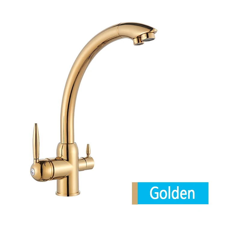 Трехканальный смеситель для кухни, белый, с фильтром, с двойной ручкой