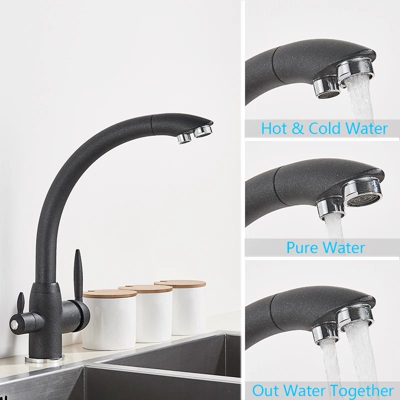 Смеситель для питьевой воды, с двойной ручкой, черный