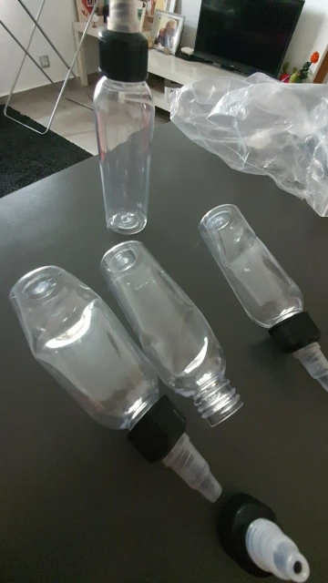 Посылка пришла очень быстро. Материал бутылочек - твёрдый пластик. Если нужно что-то выдавливать , то не получится.