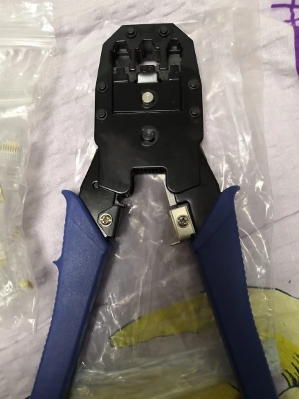 Ожидал немного помягче ручки у обжимки. Это первая обжимка с такими неприятными ручками. Немного огорчен. Но функцию свою выполняет. Провода прожимает хорошо. Кроссировочный нож пока не протестил. Зачистка для кабеля работает, пока не сломалась на две части. Тестер прозванивает, все ок.