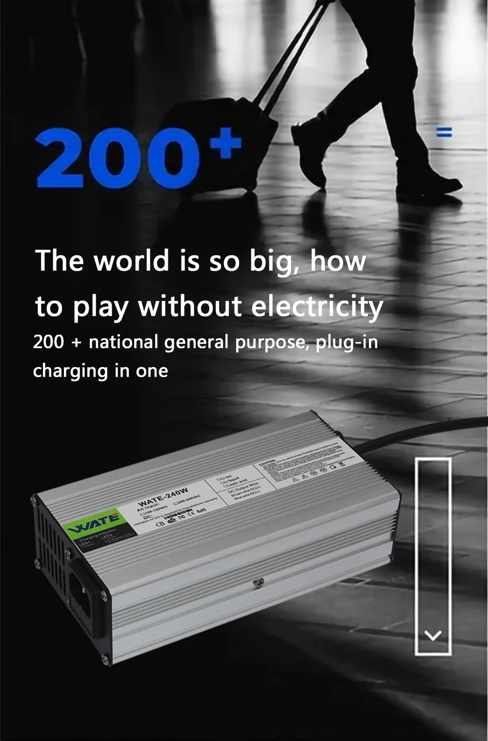 2. Выходная мощность: 240 Вт3. Выходное напряжение постоянного тока: 50,4 в 3A4. Светодиодный светильник-индикатор с логотипом: красный и зеленый, инструкции по двойному цвету, красная зарядка зеленого цвета или в режиме ожидания5. Эффективность: >85%6.MTBF: 30000 часов7. Основные Экспортные рынки: Азия/Восточная Европа/Средний Восток/Африка/Австралия/Северная Америка/Центральная/Южная Америка/Западная Европа