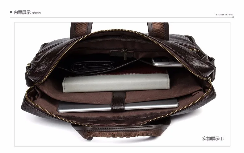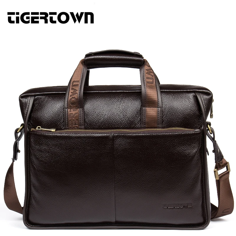 Брендовая мужская сумка TigerTown, портфель из 100% натуральной воловьей кожи на плечо для ноутбука, деловой мессенджер 14 дюймов