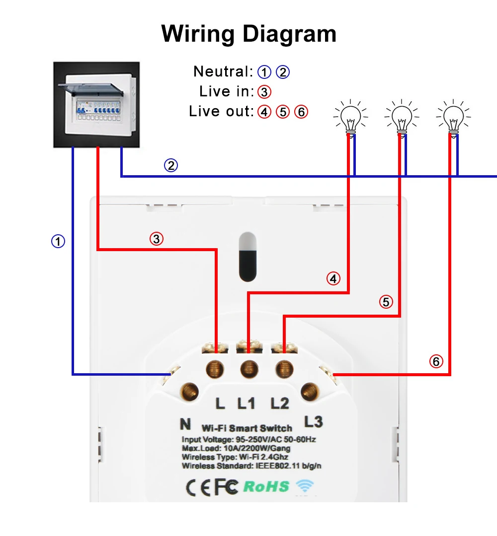 Этот сенсорный выключатель Wi-Fi должен подключаться к нейтральной линии.