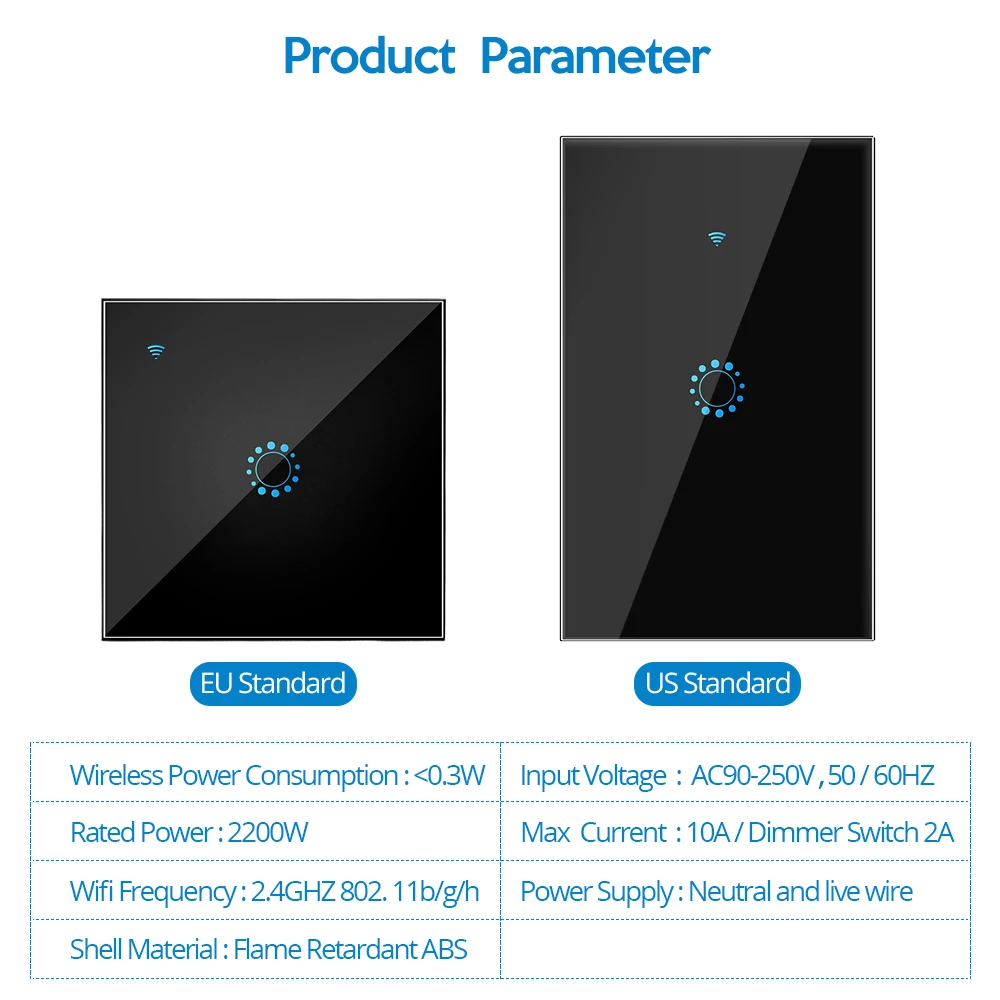Этот сенсорный выключатель поддерживает максимальную мощность 2200 Вт, которая может работать с большинством источников света и других электроприборов. Встроенный умный переключатель, кнопки сенсорного экрана более тихие и безопасные.