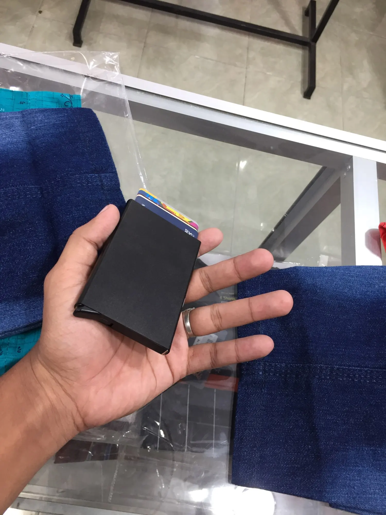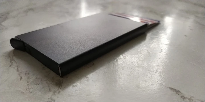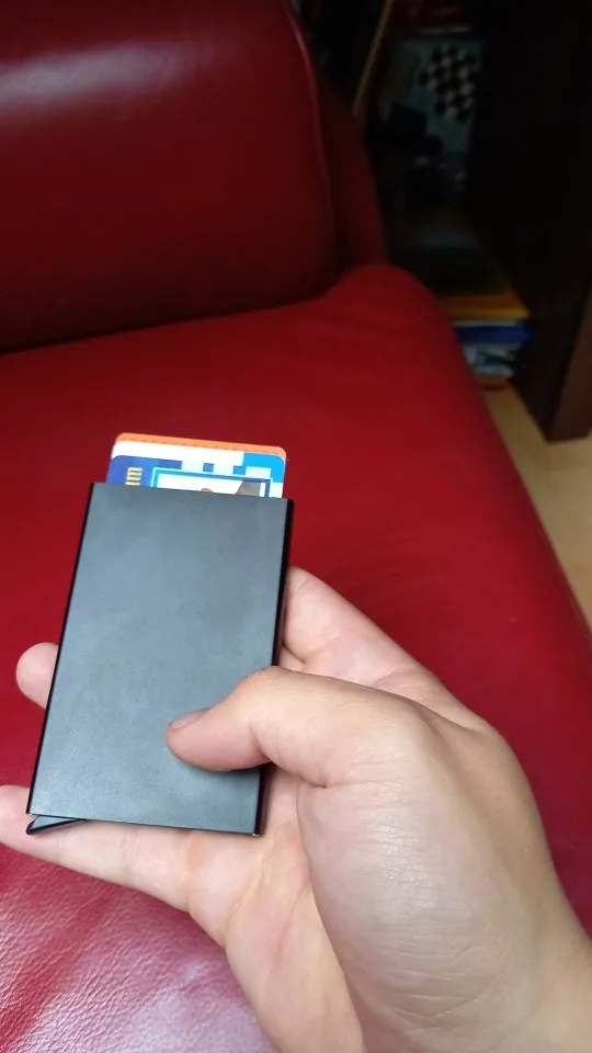 Идеальный размер, очень хорошее качество отделки, хорошее качество пластиковой подкладки. Доставка займет больше времени, чем ожидалось. Хорошо держит карты, если вы встряхните немного жесткие карты выпадут, но не должно быть проблемой для повседневного ношения.