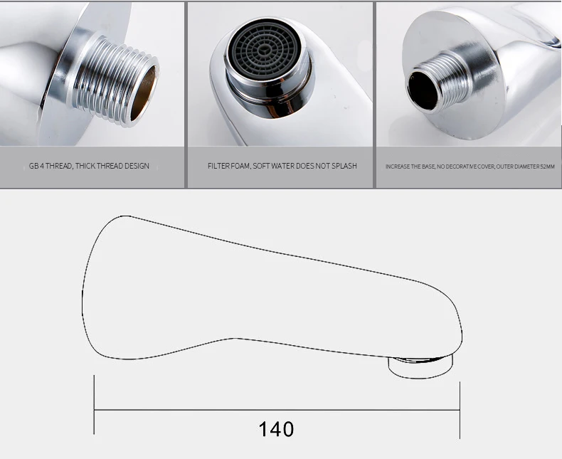 Излив для смесителя для душа, квадратный, Круглый латунный хромированныйчерный