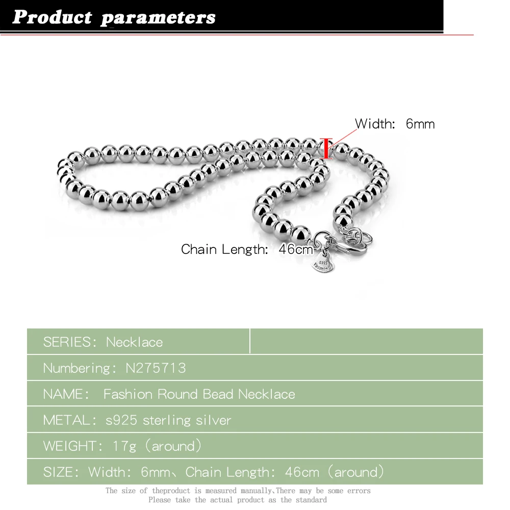 Цепочка-чокер унисекс из серебра 925 пробы, цепочка с бусинами, цепочка больших размеров