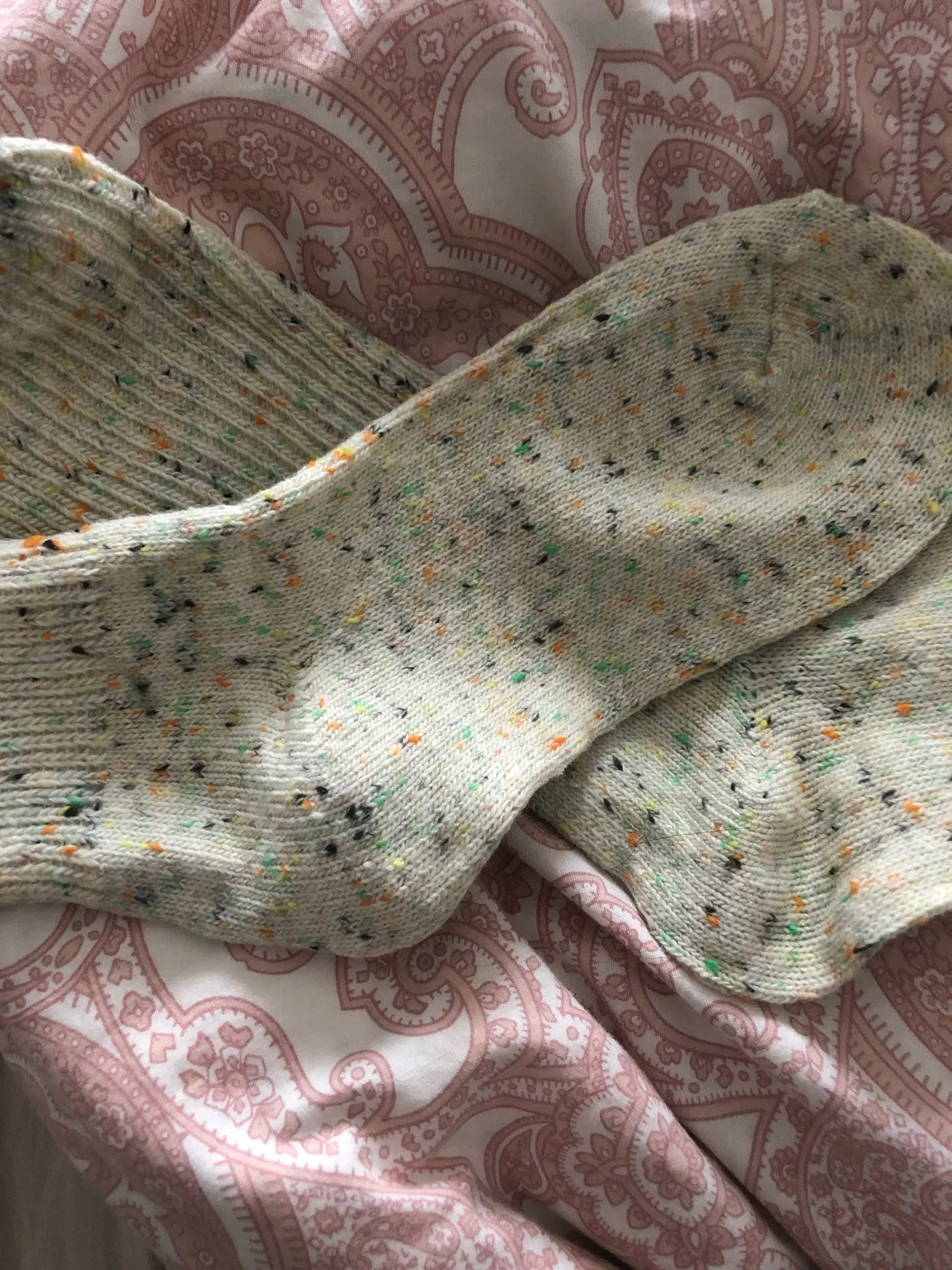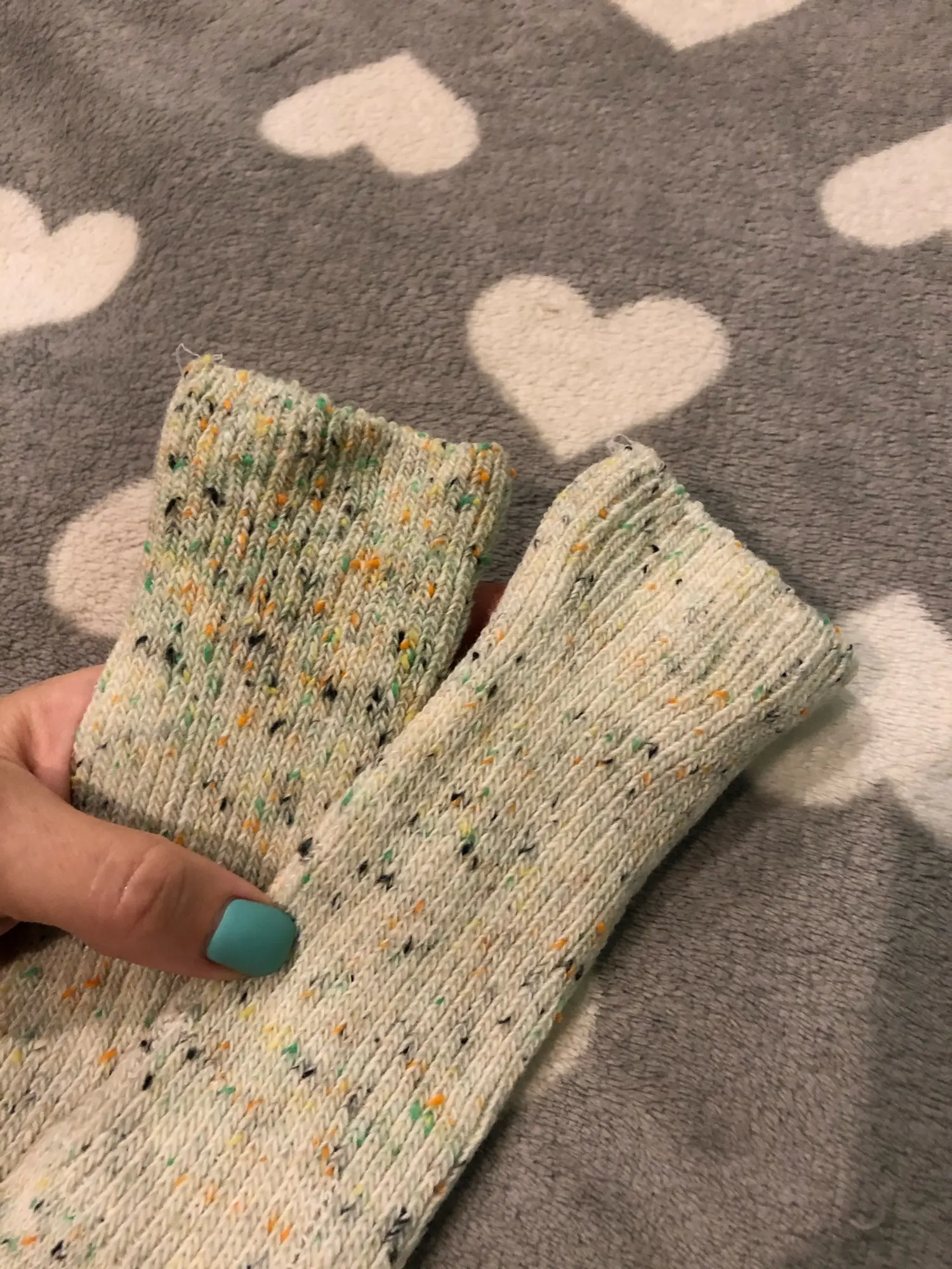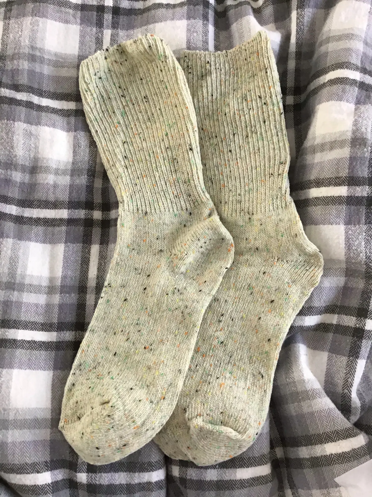 совершенно не как на фото. заказывала молочные, пришли какие то светло болотно-зелёный. так то крапинки должны выглядеть аккуратно, но тут как будто просто ниткой захватили несколько раз ЯРКИМИ(что меня удивляет) цветами и всё. выглядят как бабушкины вязанные впопыхах носки