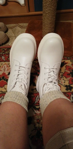 Носки мне понравились, осенью заказывала чёрные, очень приятные в носке, решила заказать ещё и белые (цвет не белый, а скорее молочный). В месте подъёма вставлена резинка, благодаря этому верх носка красиво собирается на ноге. Доставка была долгой из-за каких-то сложностей на таможне, возможно связано с большим количеством заказов перед Новым годом. Трек отслеживался. Спасибо продавцу за отличный товар!