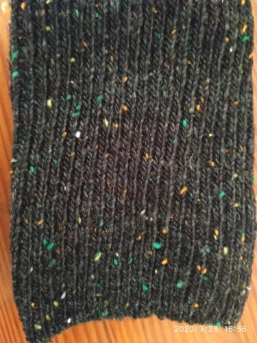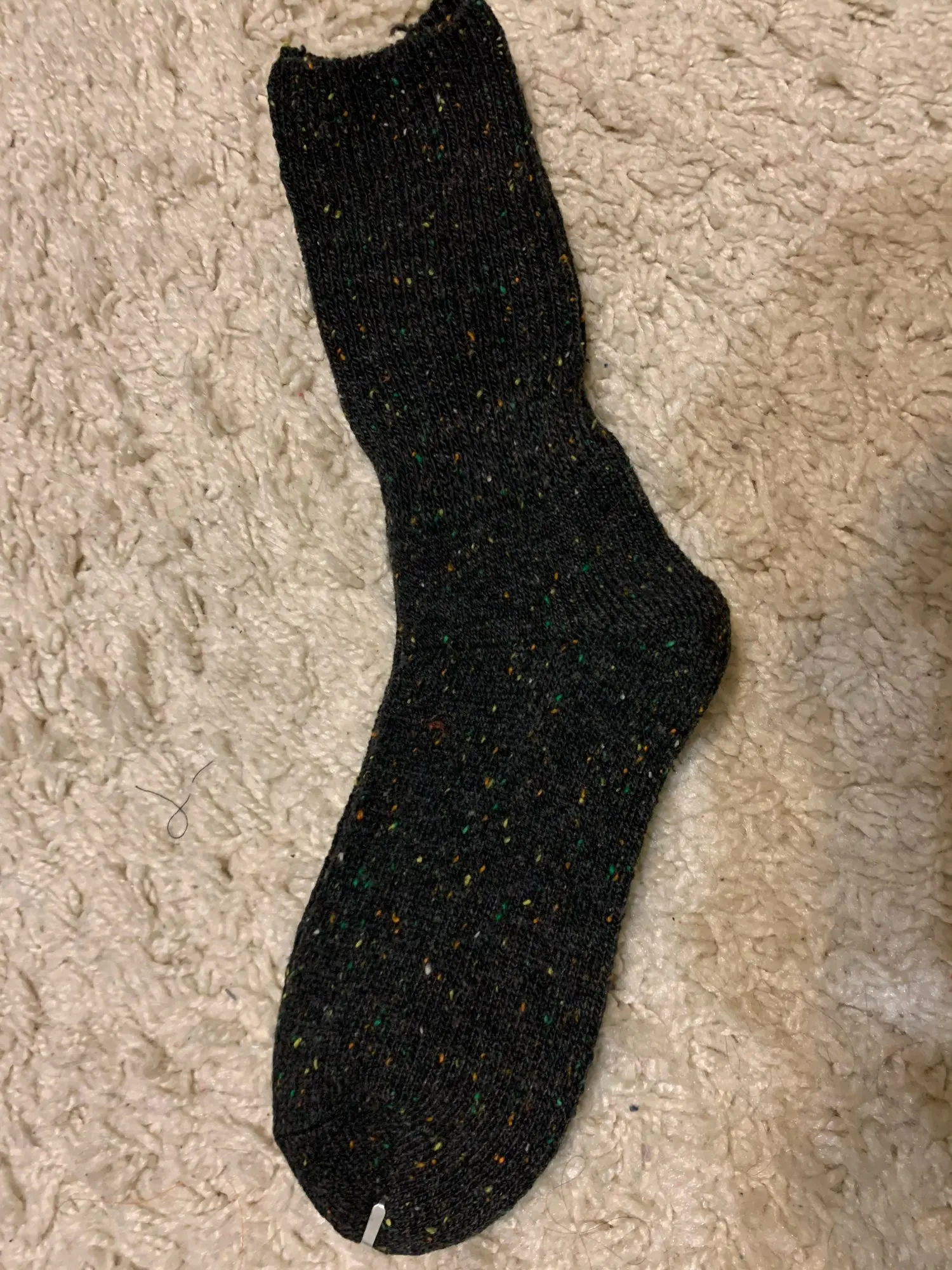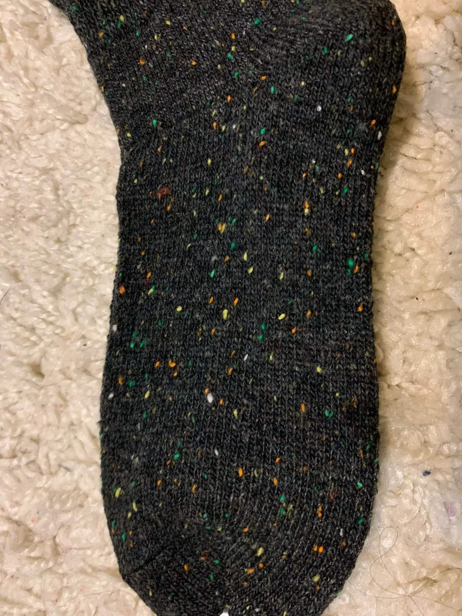 Носочки хорошие, сделаны добротно, нигде ничего не торчит, на 41 подошли отлично, но не натуральный материал, може и есть добавление,но немного, смотрятся отлично, не черные,ближе к темно серому, крапинки яркие