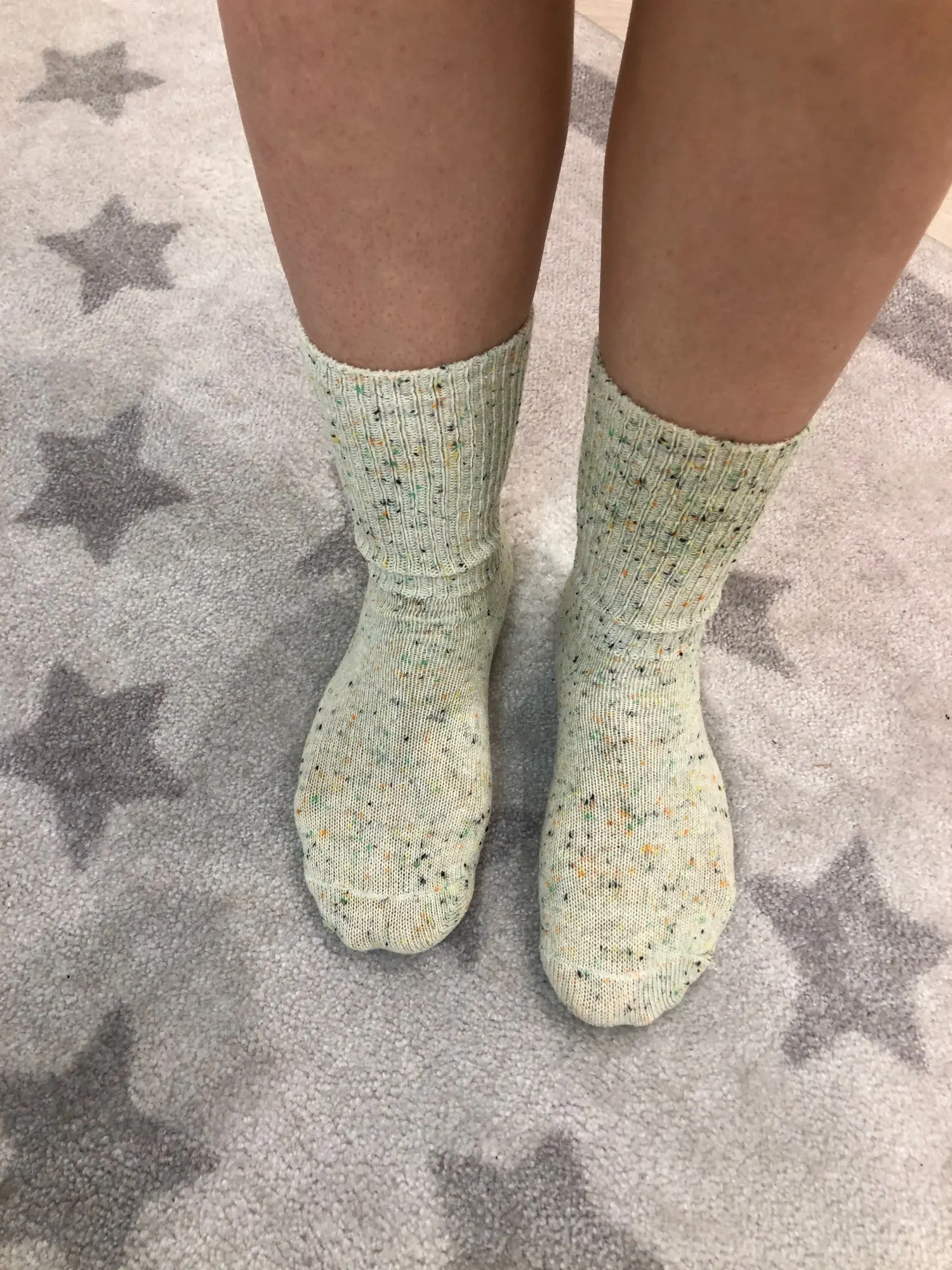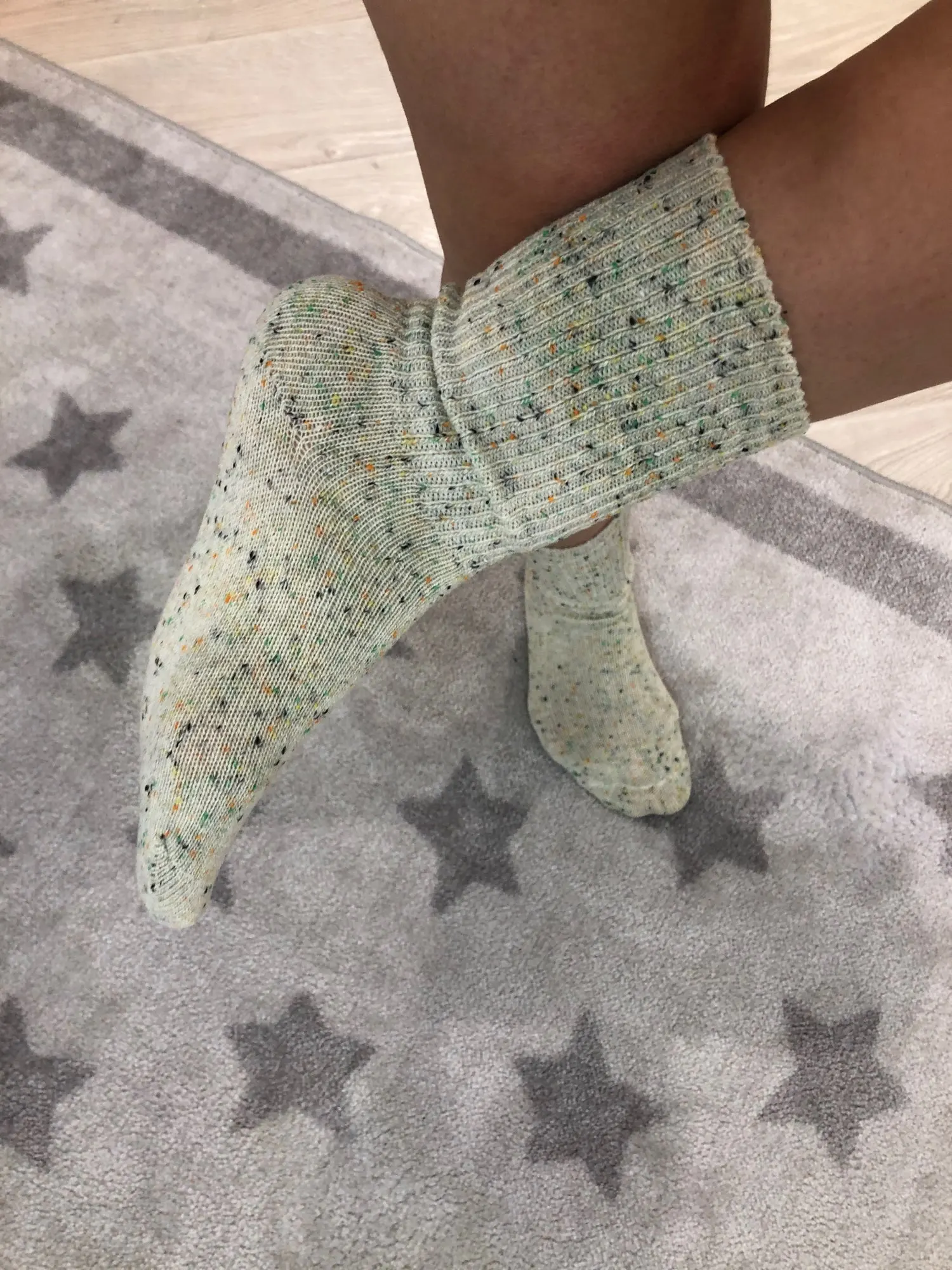 Очень долго шли носочки, я их уже и не ждала. Цвет немного «зеленит», но смотрятся прикольно, в принципе греют. С продавцом не общалась