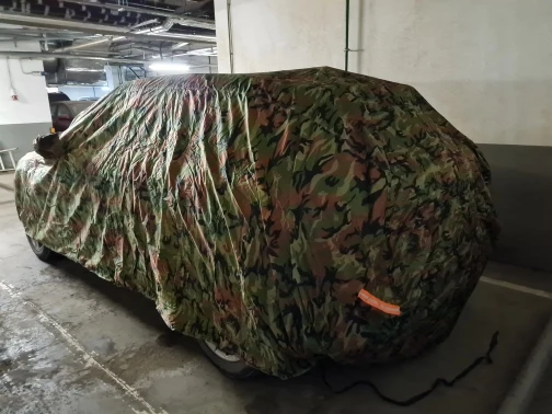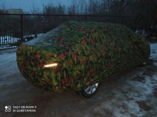 Заказал 13/11. Пришло на почту 21/11. Получил 23/11. Вскрыл, посмотрел не разварачивая. Всё вроде бы нормально. Одевать на машинку не стал. грязно. Рекомендую для охотников, рыбаков и туристов. Хорошо прятаться, когда паркуешься ближе 200 метров от водоёма.