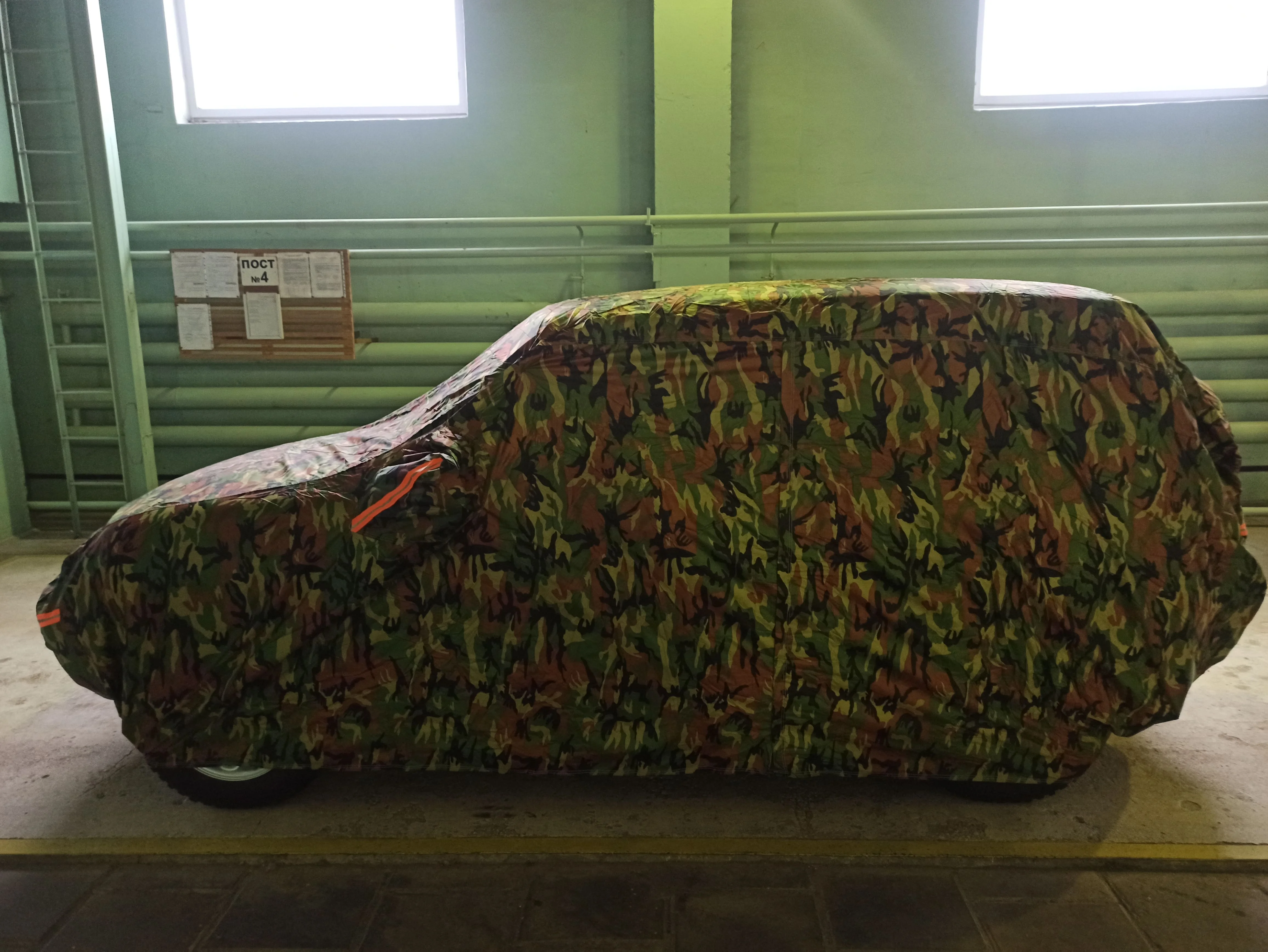 в общем заказал 11.11, 14 уже фотографировал. заказ из рассеи, пришел быстро курьером к дому. брал на ШЕВРОЛЕ НИВУ без рейлингов, с запаской, размер YM. как подошел видно на фото. если описать словами- неплохо, но сзади есть немного свободного места, т.е. как чехол от дождя и непогоды- не очень. но я брал как летний камуфляж в лесу, и тут он очень даже заипок! мешок к сожалению не сфотал, но он места занимает совсем мало, разворачивается и ставится легко и непринужденно, быстро собирается, неплохо смотрится. в общем по распродаже, плюс купон обошлось в 2200. за эту цену- просто шикарно!!