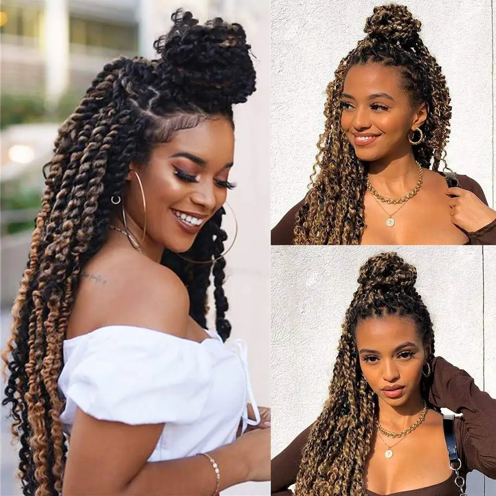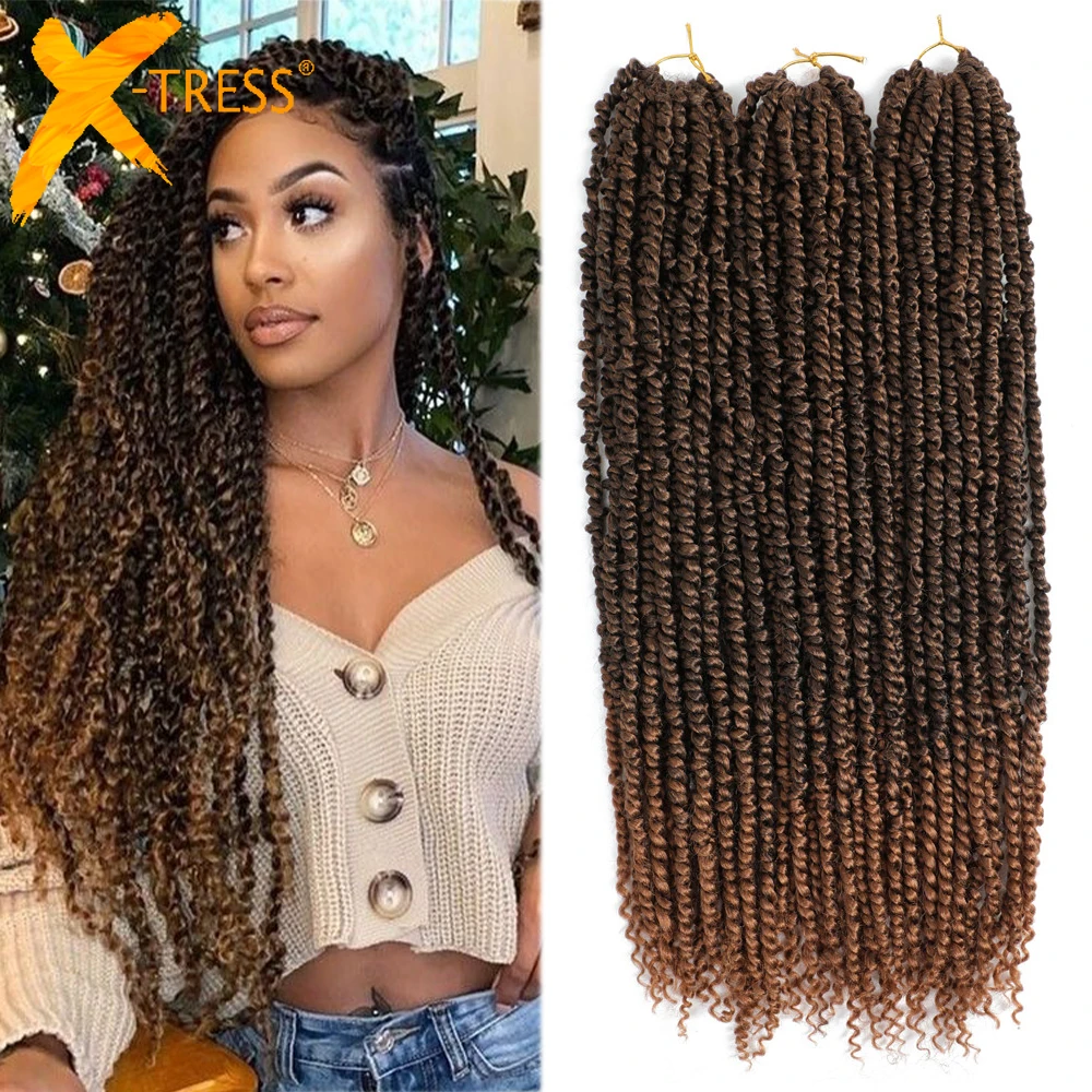 X-TRESS синтетический вязание крючком плетеные волосы Предварительно скрученные страсть завитка наращивание волос мягкие натуральные предварительно петли косы для черных женщин