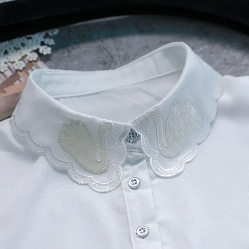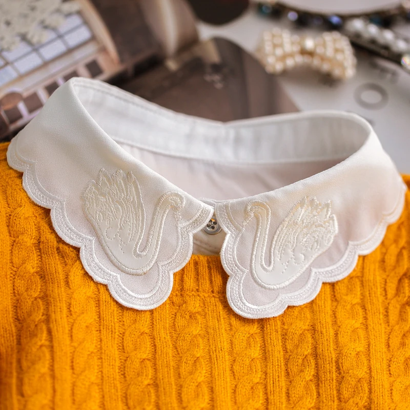 YSMILE Y зимний свитер, аксессуары, Новое поступление, женская футболка, шифоновый воротник с имитацией лебедя, элегантный белый съемный воротник