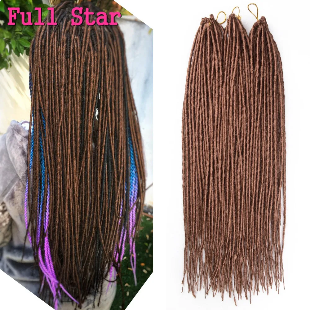 Полностью Звездные синтетические дреды, 1 упаковка, 22 дюйма, двойные концы, 100 гупак., черные, бордовые, розовые, светлые, вязаные крючком волосы для женщин