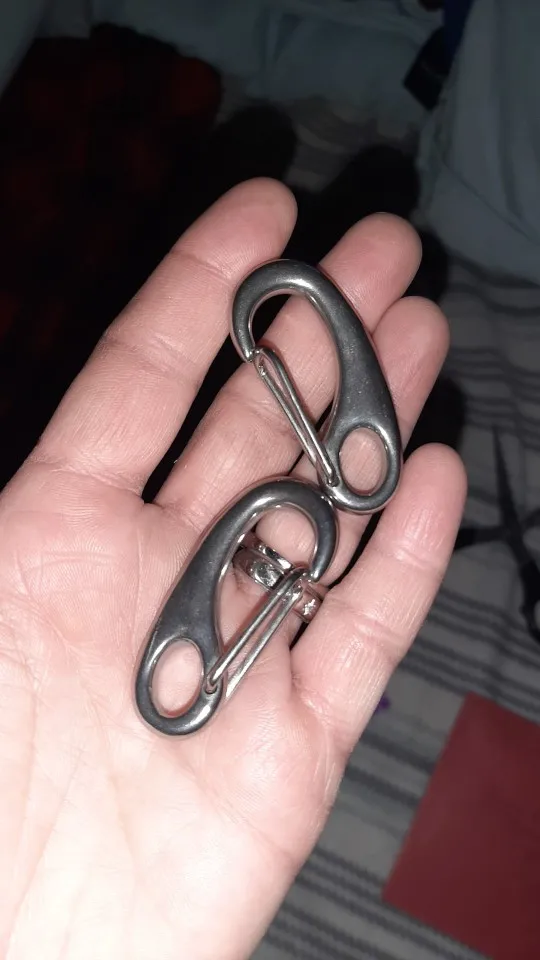 Bon mousqueton inox, semble tout à fait valable et est très pratique pour attacher ou suspendre ce que l'on veut ! Envoi rapide et efficace, livraison dans les délais, vendeur sérieux.