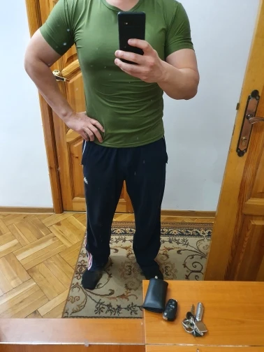 Я уже купил у этой же модели, но пустая и истина в том, что ощущается как блестящий и цепляющийся к телу. Я ношу их под униформой, и они отлично подходят. Я измерил 186 см и вес 90 кг, я получил футболку L EU, и здесь я ношу 3XL. Я, конечно, рекомендую их.