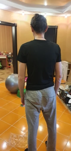 Здравия! Заказ: 21.06.2020-11.07.2020. Упаковка: полиэтиленовый пакет - индивидуальная целлофановая упаковка. Не совсем угадал с размером, но за счет лайкры эта футболка может быть натянута на слона. Сделана аккуратно. Однако петля для "вешалки" на вороте несколько обескуражила - аляповатая и здоровая полоска белой ткани... Вырез, имхо, чрезмерно большой. Тянется очень сильно во все стороны... Длина футболки небольшая, чуть ниже пояса - сколько ни растягивай ниже, все равно возвращается... Легкая, тело дышит. Хочу взять еще одну на размер больше, только опасаюсь, что на ней и вырез будет еще больше... Футболкой и продавцом доволен.
